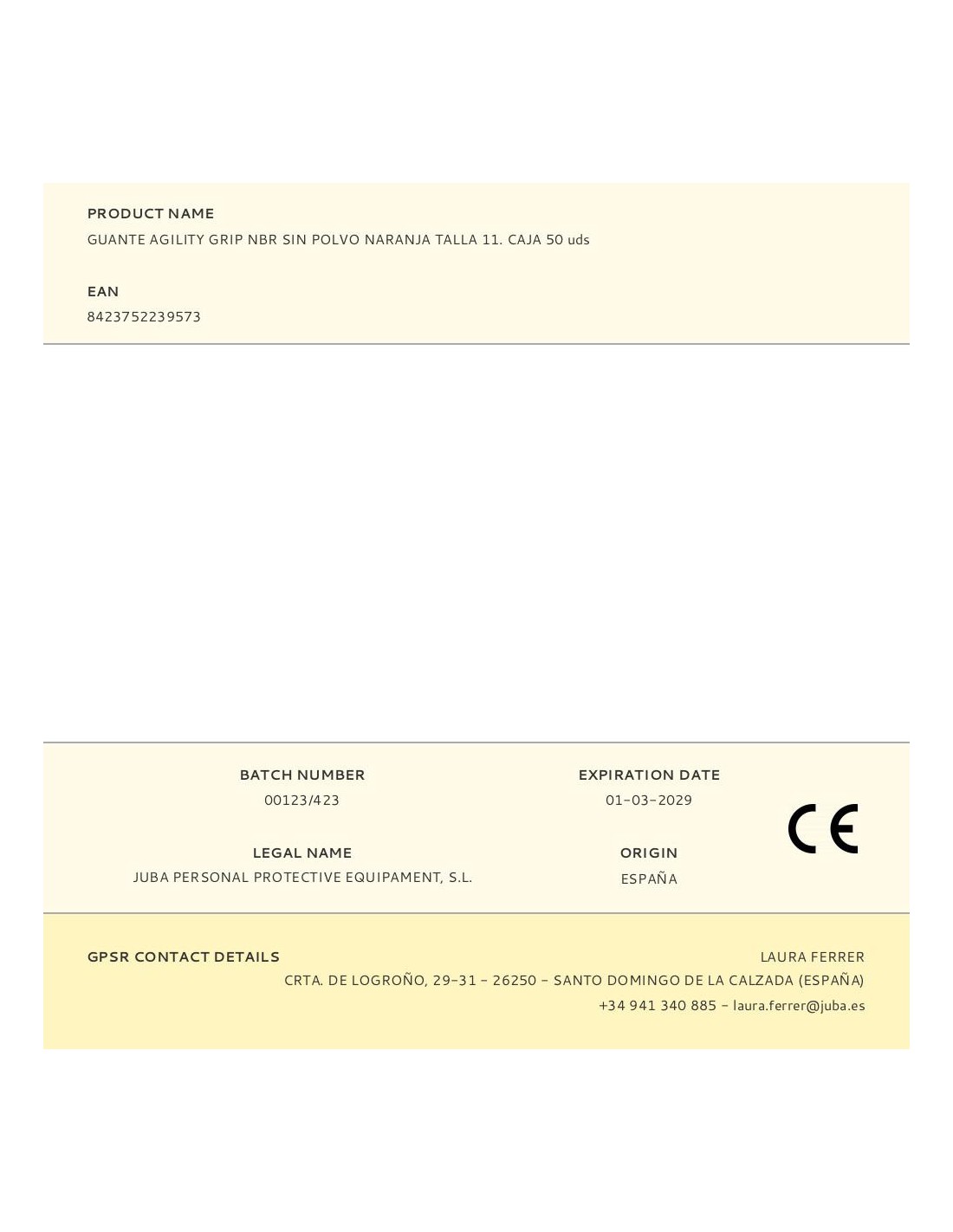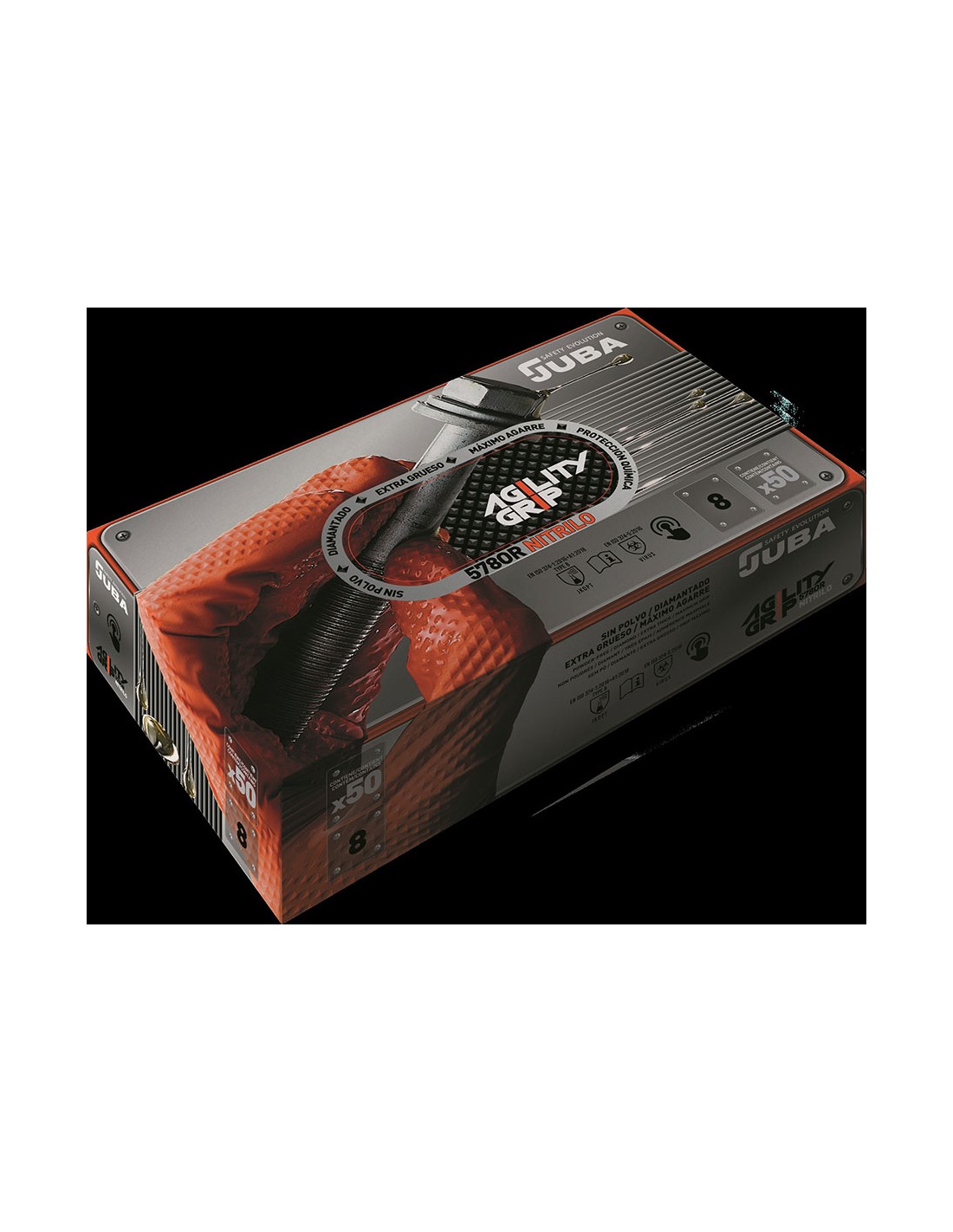 Guante desechable agility grip de caucho de nitrilo butadieno sin polvo, color naranja, t-11 ambidextro, diamantado, extra grueso, máximo agarre, táctil, protección química usos: galvanizados, montajes ligeros, mantenimiento de vehículos, agricultura y horticultura, limpieza y mantenimiento industrial, tatuadores, peluquerías