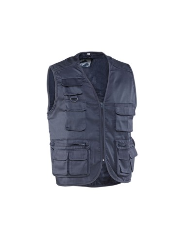 Chaleco fisherman multibolsillos de verano poliester/algodón, sin forro color azul marino. talla xs