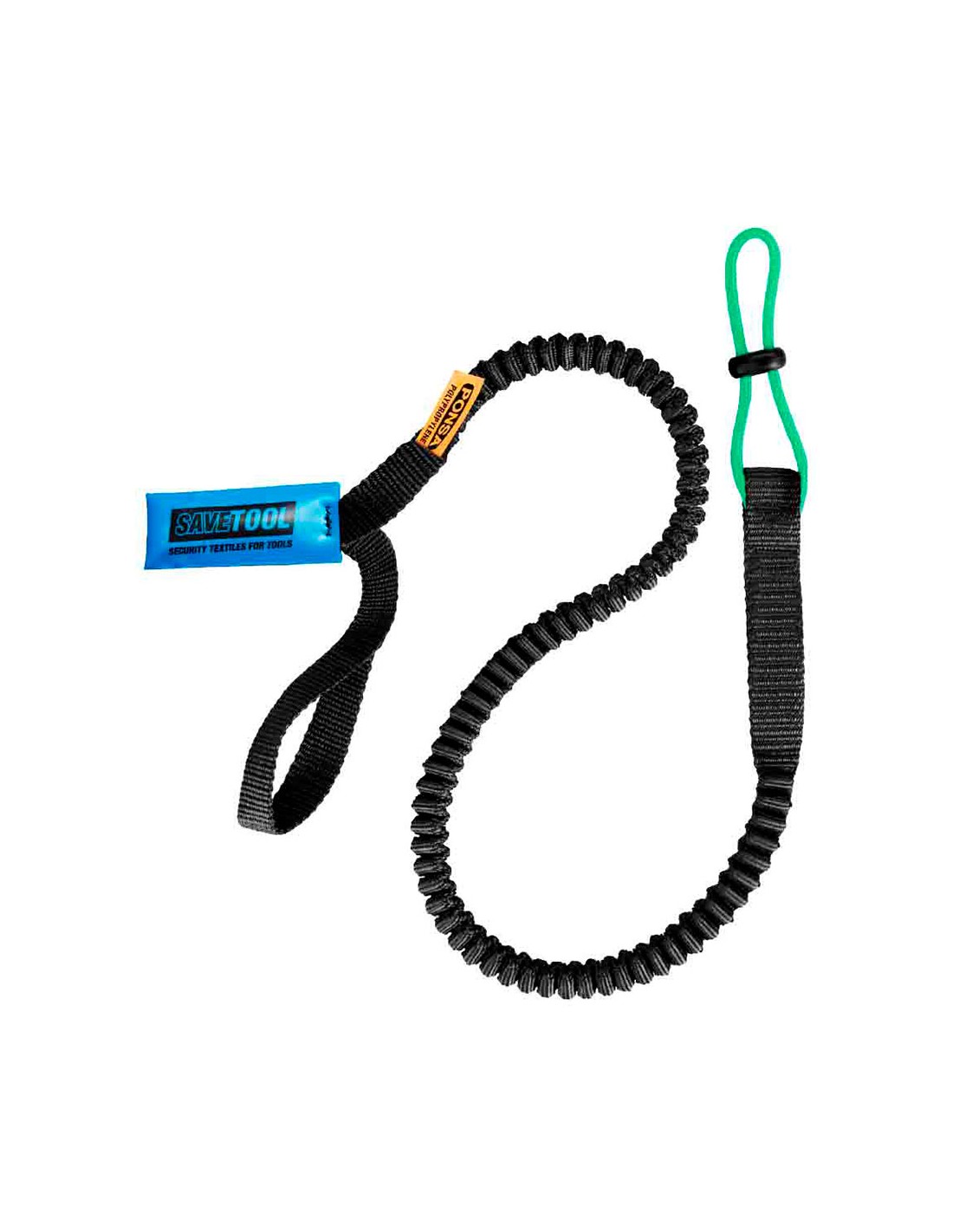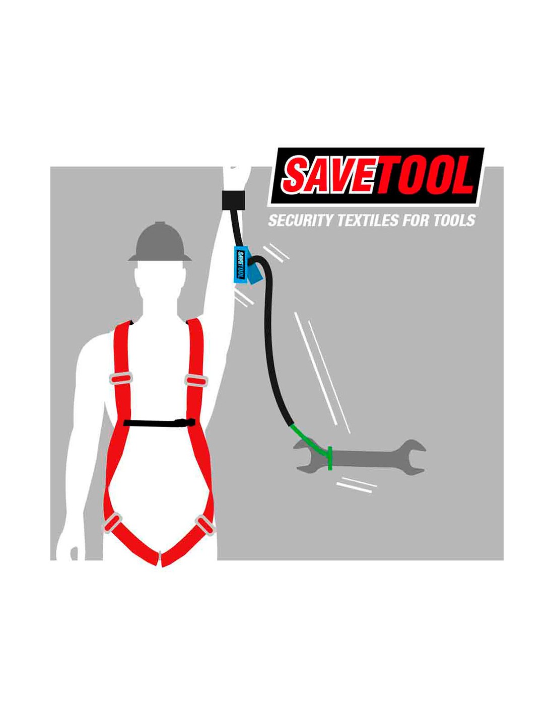 Equipo contra la caída de una herramienta de hasta 1kg. el producto permite retener la caída accidental de una herramienta. se puede formar un sistema, por medio de la conexión del mosquetón auxiliar como conector, por el componente de anclaje (muñequera) más el componente de atado de herramientas, o bien por el componente de anclaje (muñequera) más el componente de enganche de herramientas. se compone 1 cinta de sujecion, 1 muñequera, 2 mosquetones y 4 enlaces material: poliéster, color: negro