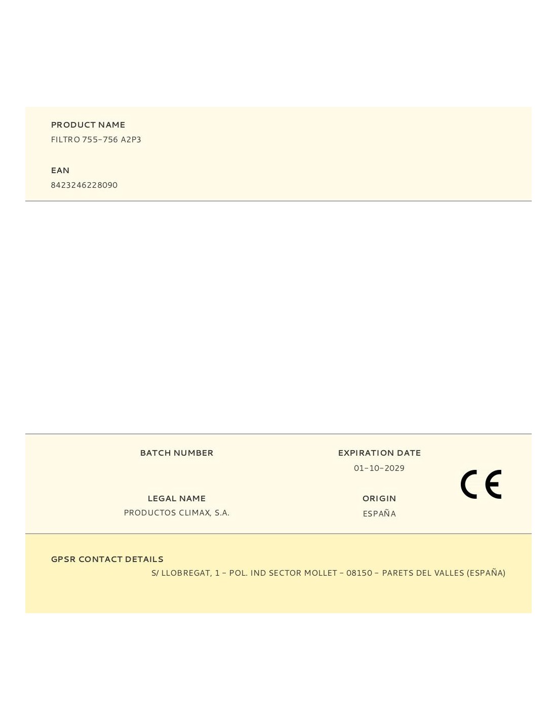 Filtro 755-756 a2p3 contra gases y vapores de compuestos químicos formado por un cuerpo cilíndrico fabricado con abs de color negro que encaja con una tapa del mismo material. norma: en14387:2004 + a1:2008