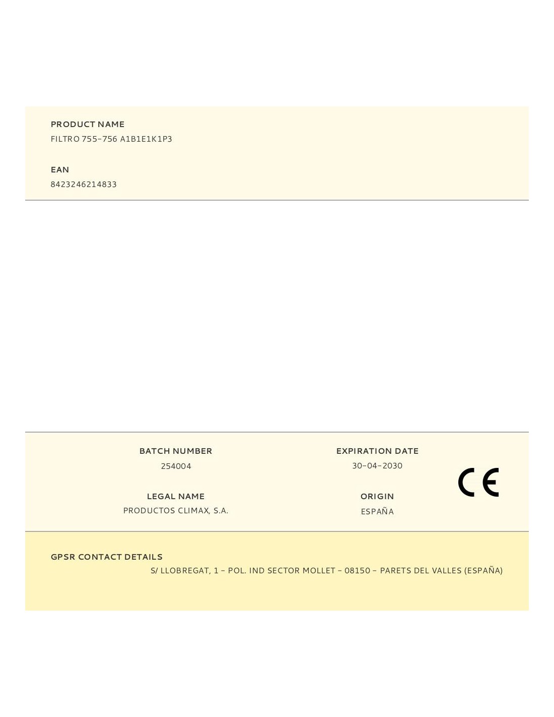 Filtro 755-756 a1b1e1k1p3 contra gases y vapores de compuestos químicos formado por un cuerpo cilíndrico fabricado con abs de color negro que encaja con una tapa del mismo material. norma: en14387:2004 + a1:2008
