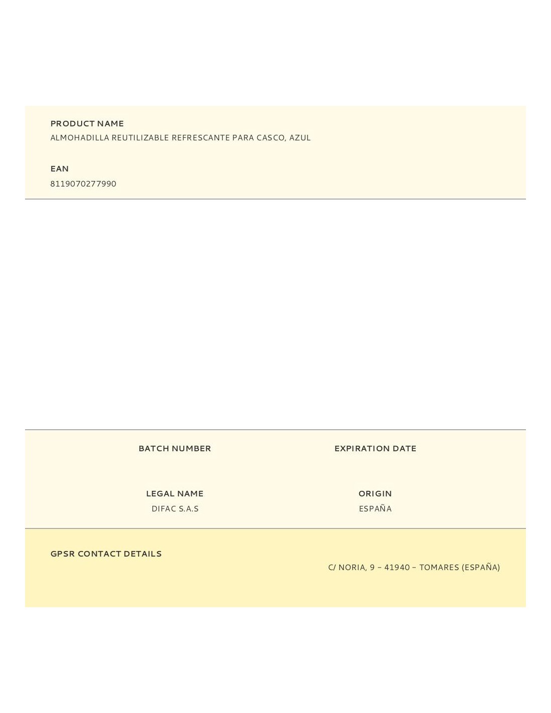 Accesorio refrescante apto para todos los cascos, se puede reutilizar tantas veces como se desee, azul