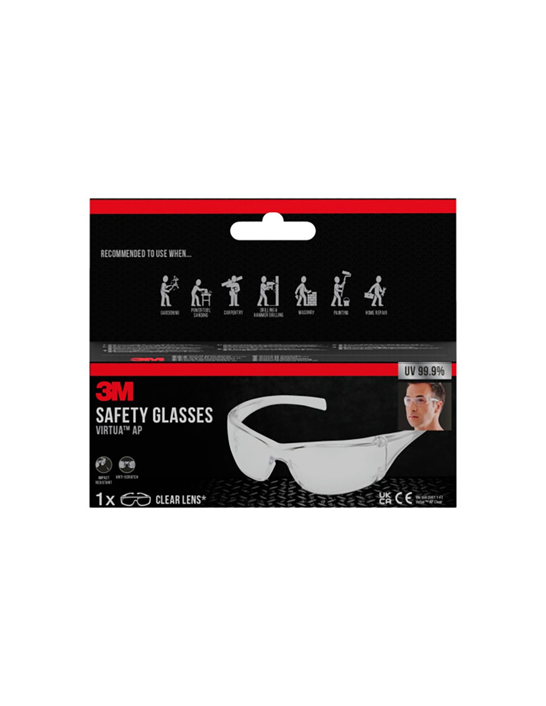 Gafas de seguridad virtua ap, lente incolora. su diseño envolvente proporciona una excelente cobertura y un buen campo de visión las protecciones laterales integradas proporcionan una protección adicional, diseñada para uso en exteriores, resistente a impactos, protección antiarañazos