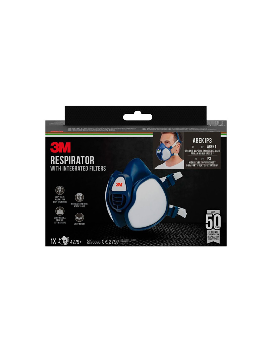 Mascarilla con filtros integrados 4279+, filtros combinados abek1p3