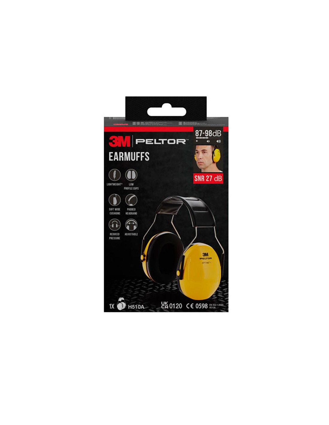 Protector auditivo acolchado (87-98 db). snr: 27 db, amarillo, peltor optime h510a