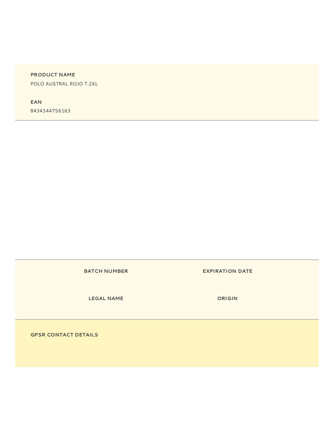 Polo austral rojo t.2xl, 63 cm / 77 cm de manga corta, con cuello acanalado y tapeta de 3 botones, cubrecosturas reforzado en cuello 100% algodón, punto piqué, 180 g/m