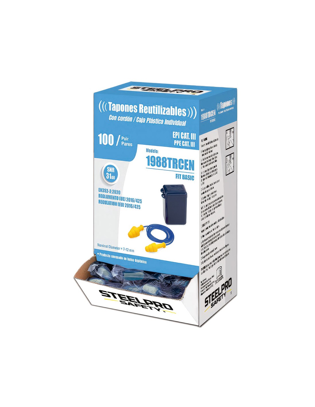 Tapones auditivos fit basic reutilizables termoplásticos hipoalergénicos con cordón, caja 100 uds snr: 31db, en352-2
