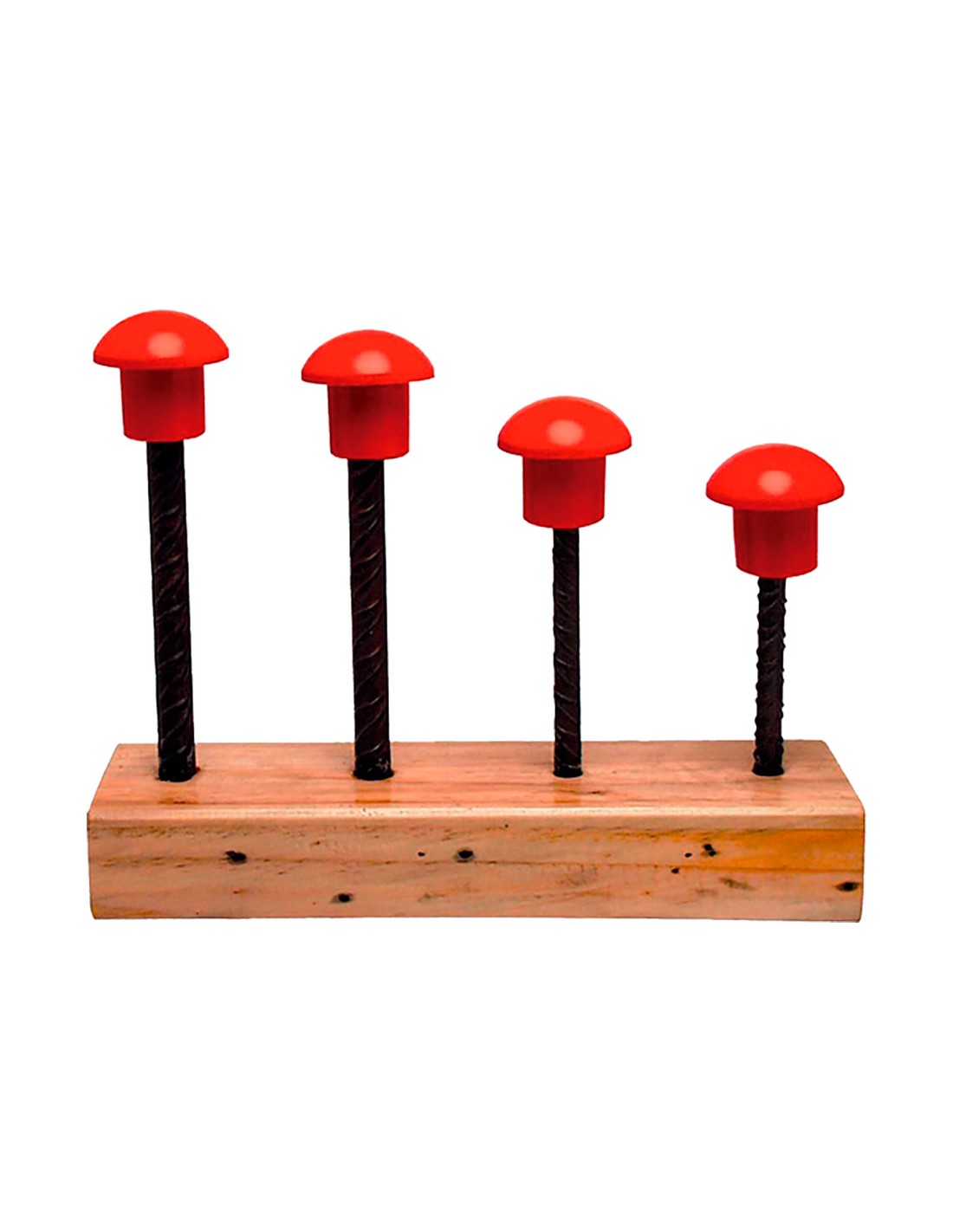 Protector de varila ideal para la protección y señalización de ferralla y elementos punzantes, entre un diámetro de 12 y 24 mm. en el interior de la base 4 lengüetas flexibles para que se adapten a los diferentes diámetros. medidas: ø32 mm interior base y ø60 mm sombrero