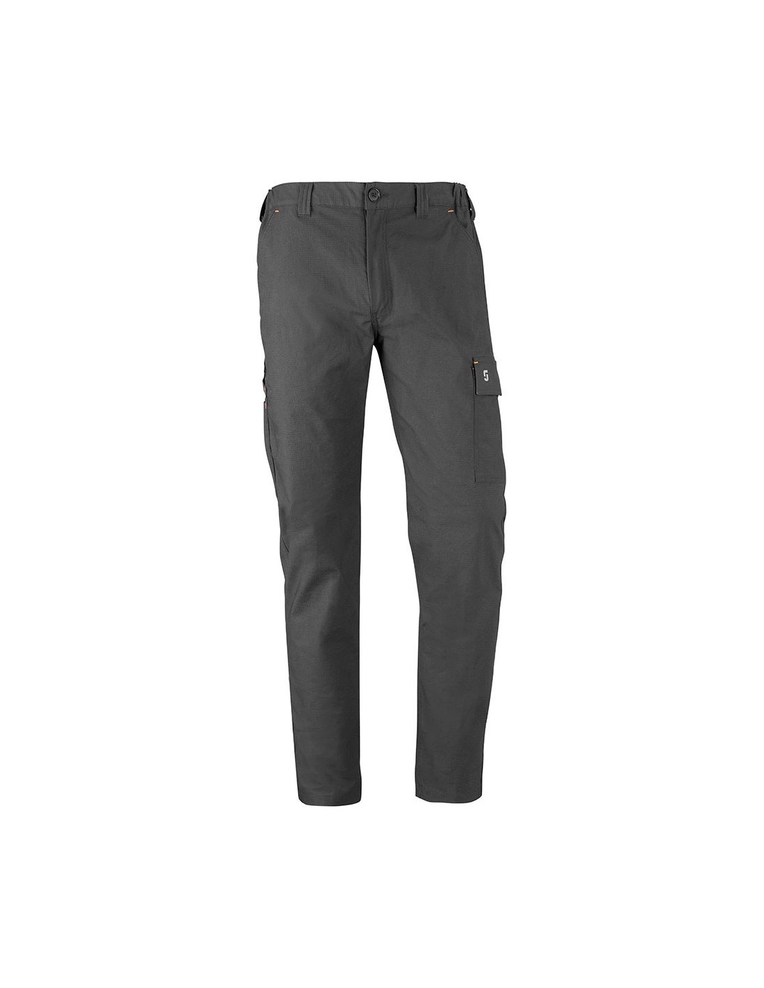 Pantalón de trabajo stretch multibolsillos. un diseño unisex y ergonómico, confeccionado con tejido elástico para máxima adaptabilidad y funcionalidad. múltiples bolsillos funcionales: un bolsillo lateral con solapa y cierre, un bolsillo para herramientas lateral, dos bolsillos frontales y dos traseros abiertos. remates en naranja. 97% algodón y 3% elastano