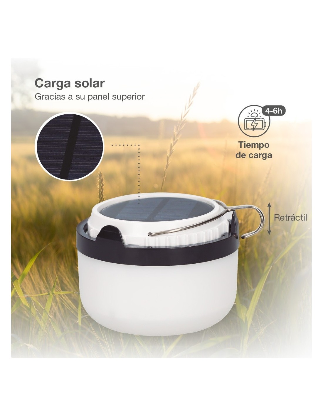 La linterna solar LED camping de GSC Evolution es una opción versátil y eficiente para tus aventuras al aire libre. Con una potencia de 5W y 300 lúmenes, proporciona una iluminación adecuada con un alcance de hasta 50 metros.