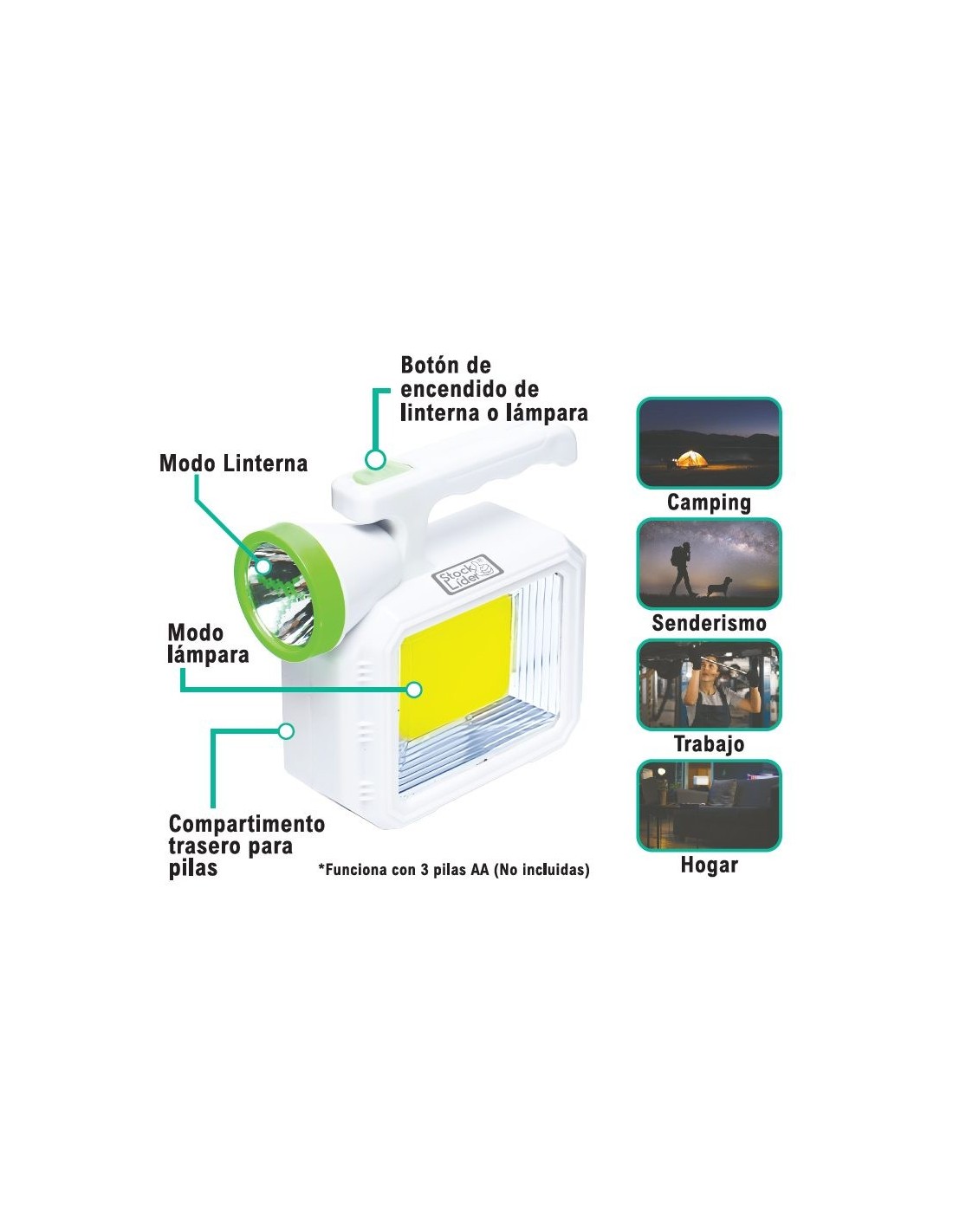La Lámpara y Linterna LED StockLider es la compañera perfecta para tus aventuras y para el hogar. Su diseño versátil combina dos modos de luz en un solo dispositivo: modo linterna para iluminación direccional y modo lámpara para luz ambiental.