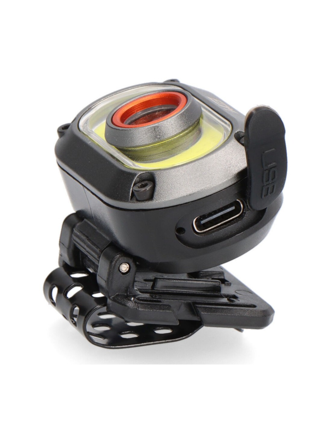LINTERNA FRONTAL LED DE ALUMINIO RECARGABLE. LUZ CENTRAL (SPOT) DE 7W 4 FUNCIONES: TURBO 500 lm, 90m; ALTO 200lm, 1h, 60m; MEDIO 100lm, 1,5h, 42m; BAJO 25lm, 3h, 23m. LED GENERAL (COB) 3 FUNCIONES: ALTO 200lm, 25min, 24m; BAJO: 50lm, 1h, 11m; ROJO 25lm, 30min, 8m; CARGA DE 3h, CABLE USB-C INCLUIDO, IP44, MEMORIA DEL ÚLTIMO MODO, INCLINACIÓN AJUSTABLE 135°, CLIP DE SUJECIÓN