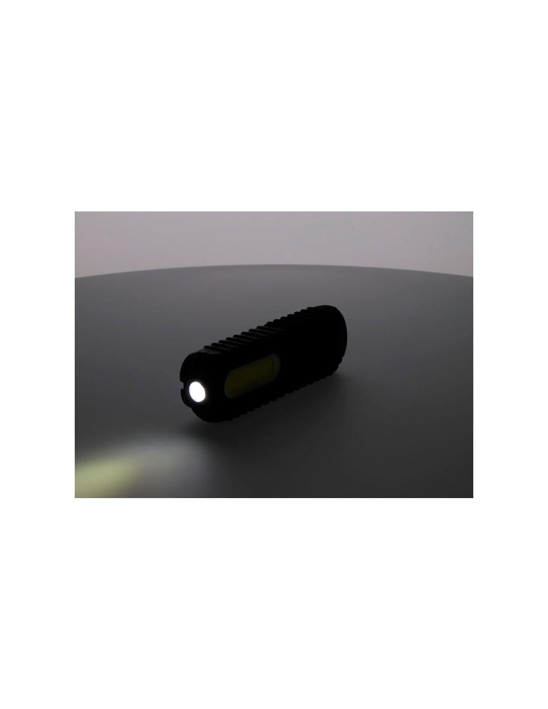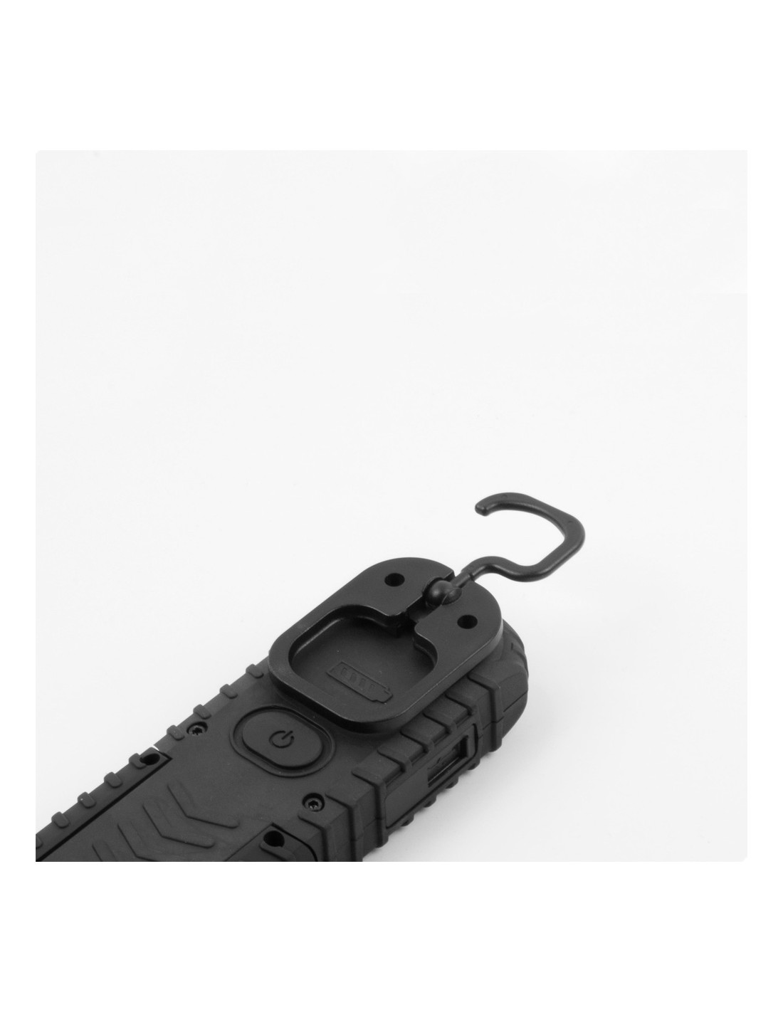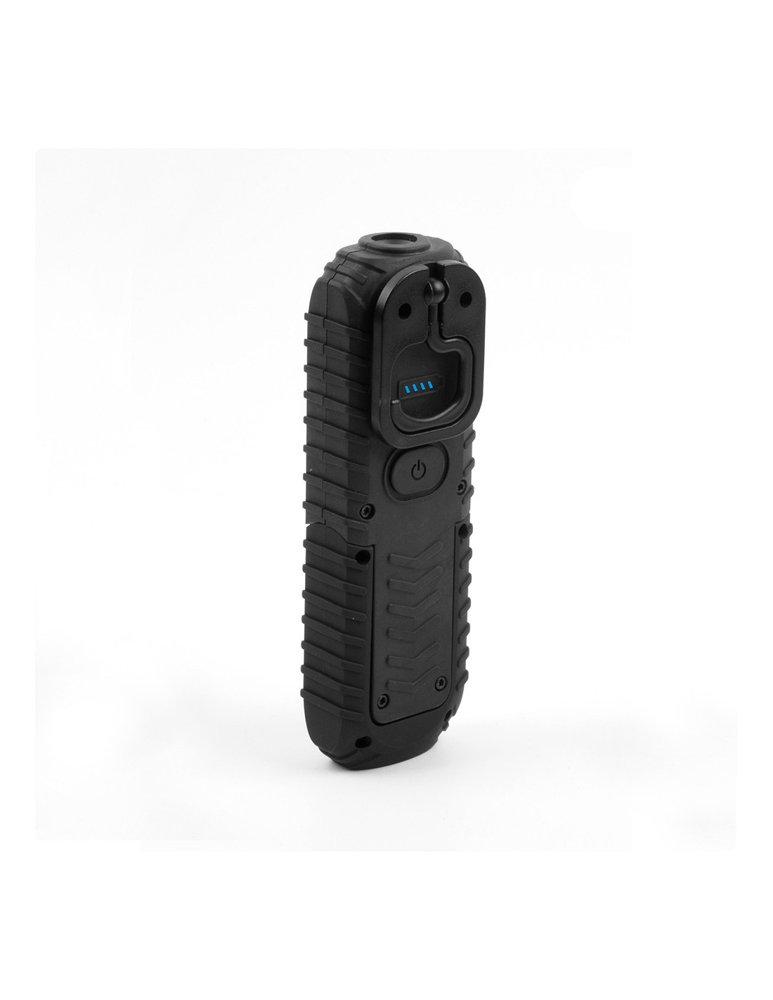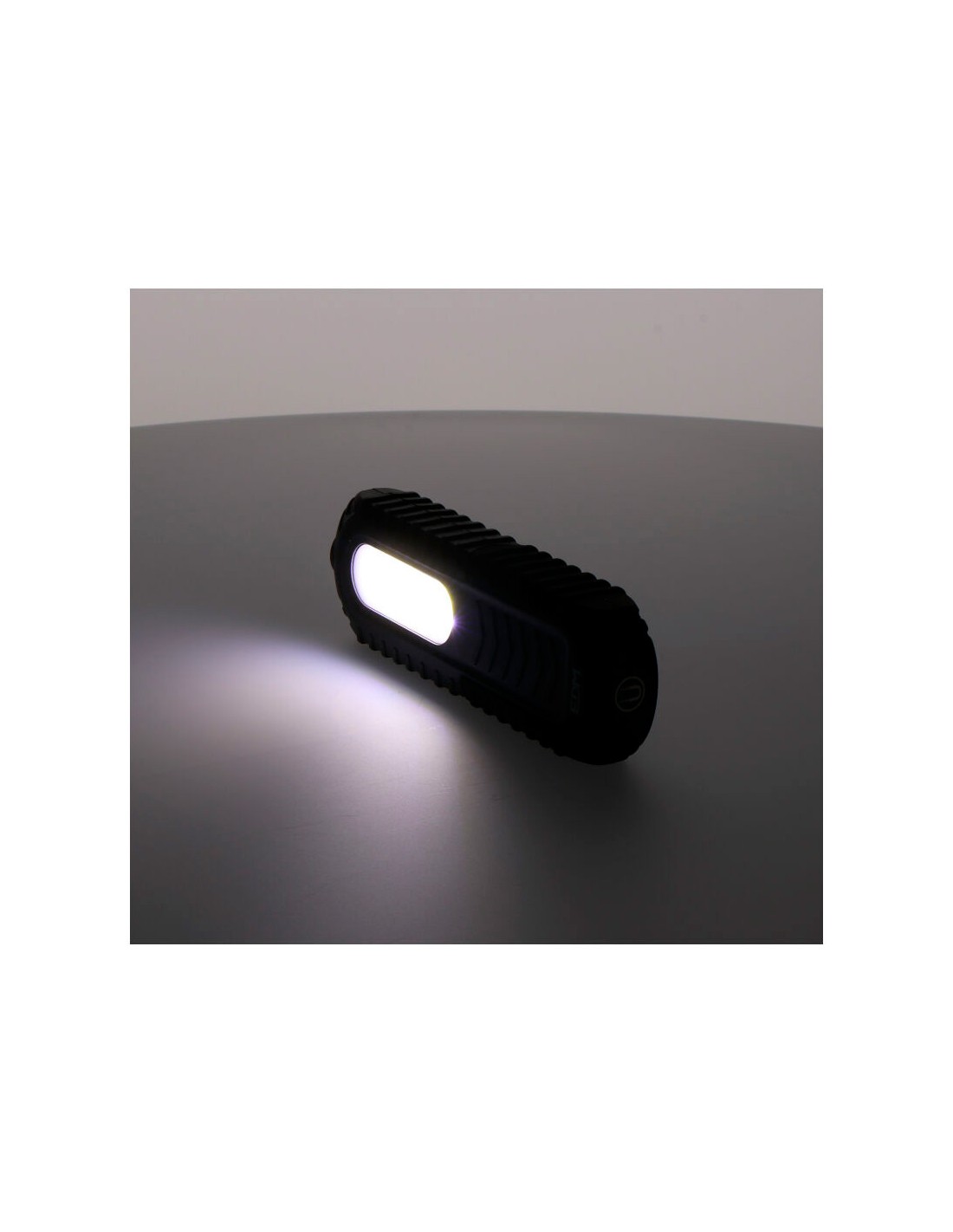 Linterna de trabajo led cob 3w 90lm / 5w 300lm. recargable con cable micro usb incluido.batería de litio incluida de 2000mah. soporte basculante 180° imantado + gancho. linterna antichoque. medida: 5,5x3,5x16,5cm. presentacion en expositor de 6 unidades