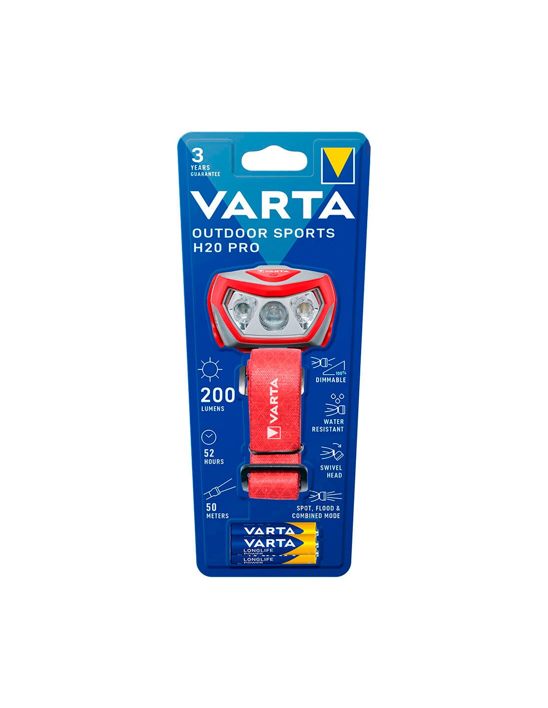Linterna outdoor sports h20 pro varta.diseño de producto propio de varta. accesorio deportivo robusto y elegante en atractivos colores para aventuras al aire libre.3 modos de luz: foco, reflector y modo combinado (todos regulables). función de atenuación para intensidad de luz infinitamente ajustable. led rojo para visión nocturna, no deslumbrante.indicador de batería baja en led rojo.práctica y gran comodidad de uso gracias a la correa para la cabeza ajustable, extraíble y lavable. funciona con pilas (incl. 3xaaa). a prueba de golpes (prueba de caída de 2m). ipx4 resistente al agua. cabezal giratorio para una iluminación ideal del entorno. funciones convenientes para la mejor experiencia al aire libre sin límites.