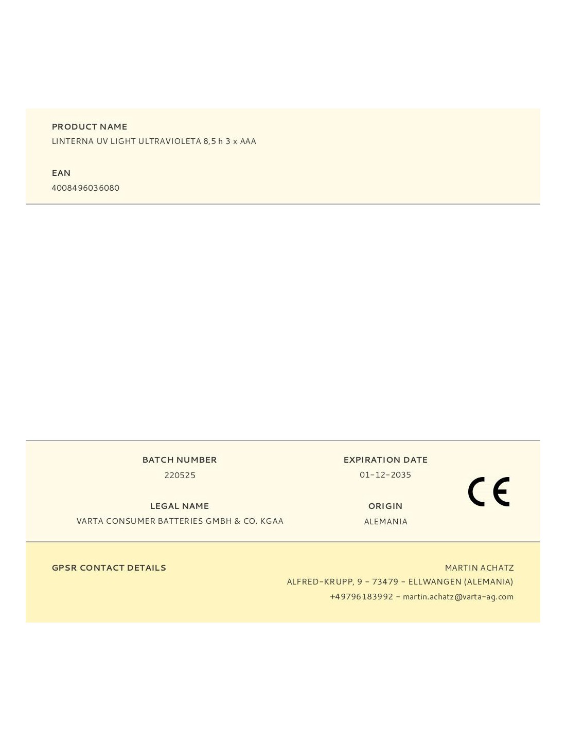 Linterna uv light ultravioleta varta 8,5h 3xaaa. múltiples usos: útil ayudante de higiene para mantener un alto nivel de higiene. detecta e identifica residuos de suciedad u orina de mascotas. comprueba y verifica billetes, huellas dactilares y fluorescentes.