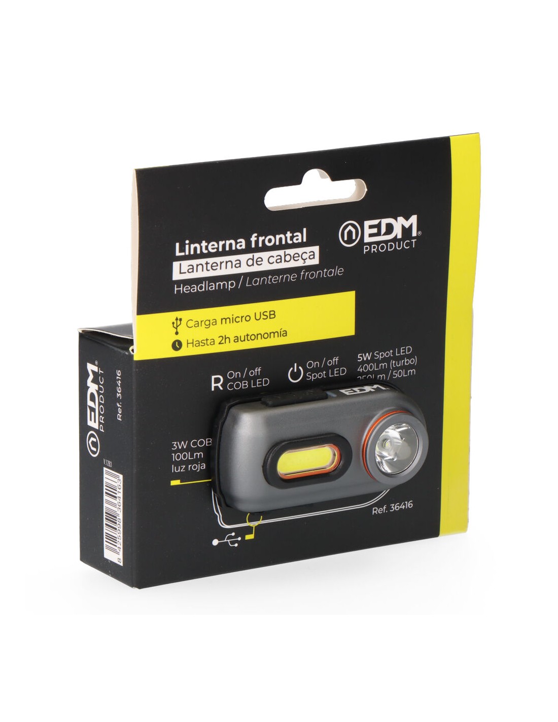 EDM LINTERNA FRONTAL LED DE ALUMINIO RECARGABLE 7W+ 5W