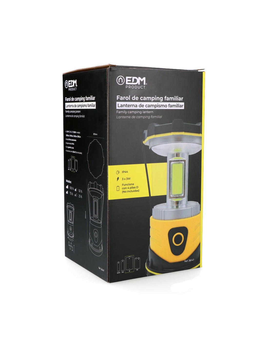 Farol led river trek 3x3w cob led 7500k 4 modos: 1200lm/900lm/600lm/300lm. funciona con 4 pilas d/lr20 no incluidas. impermeable ip44. hasta 8h de autonomía. con gancho y asa. dimensiones: ø13x25cm.
