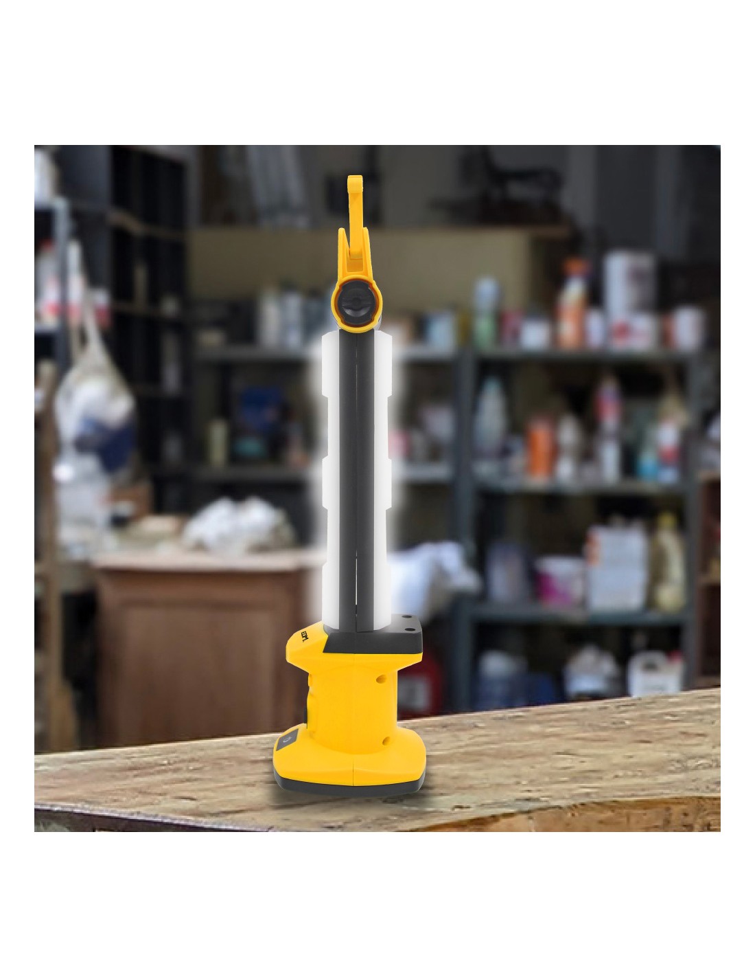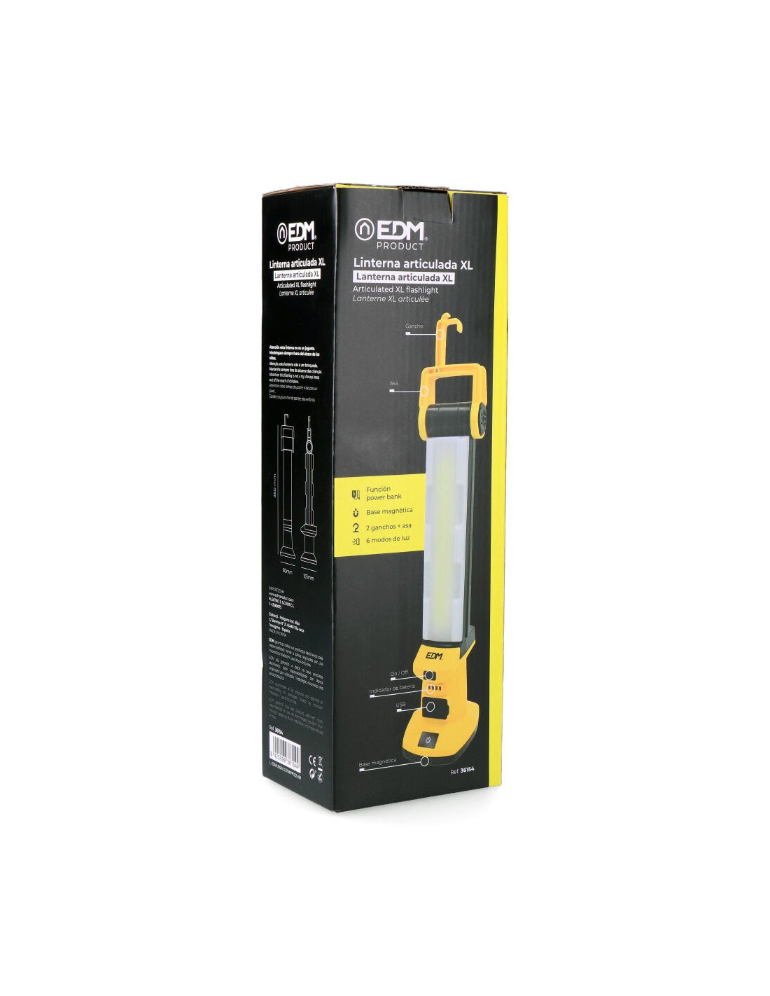 Lámpara articulada xl 20w 1500lm. varias potencias: parte inferior: 100% - 50%, parte superior: 100%, 50%. potencia: parte inferior 1000lm/500lm, parte superior: 700lm/350lm. con las dos posiciones: 1500lm + 700lm. funciona con batería 4400mah, incluye gancho y función power bank. base magnetica, con brazo articulado giratorio tiempo funcionamiento aproximado 20h, tiempo de carga aproximado 6h, incluye cable usb. dimensiones: 32,5 x 10,8 x 8,3 cm