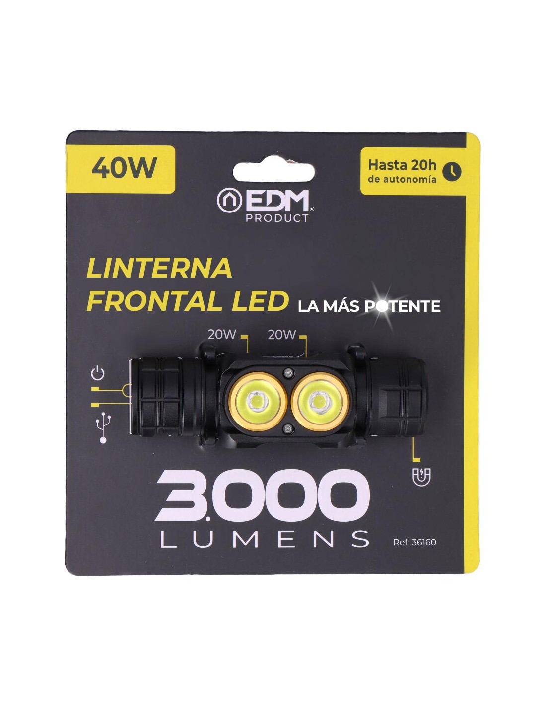 Linterna led frontal thunder track,5 modos de luz, con hasta 20h de autonomía. características: ip44, con cinta de cabeza e imán, batería 2600mah de litio, cable usb tipo-c incluido, 2x20 led 7000k en 4 modos: turbo(30s) 3000lm/1000lm/400l,/25lm, modo de luz estroboscópia (flash), tiempo de carga 5h.