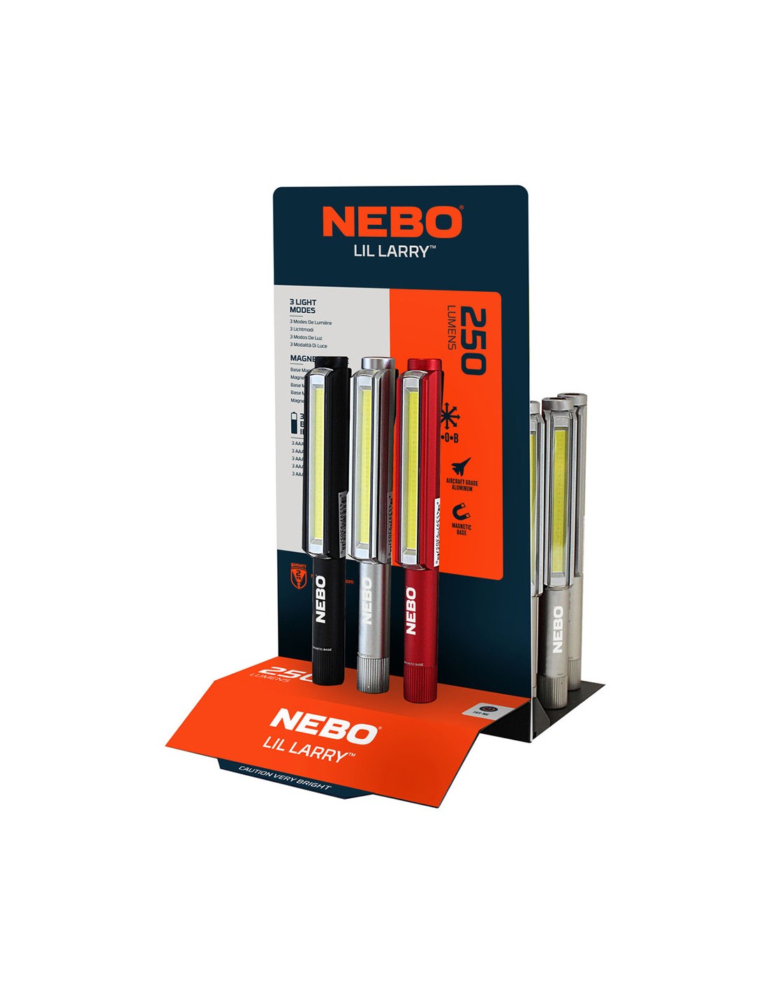 Por la compra de 18 unidades, incluye expositor sin cargo. no dejes que el nombre te engañe, lillarry tiene suficiente poder para ocupar el lugar que le corresponde en la familia larry. lillarry está equipado con una luz de trabajo c o b de 250 lúmenes, con 3 modos de iluminación: flash rojo alto, bajo y emergencia. el cuerpo de aluminio anodizado y la carcasa led empotrada aseguran que lillarry esté listo para cualquier tarea.