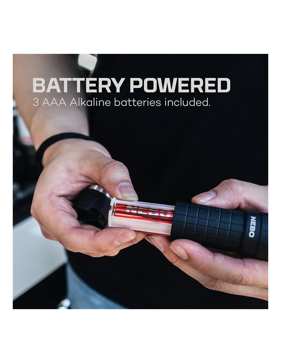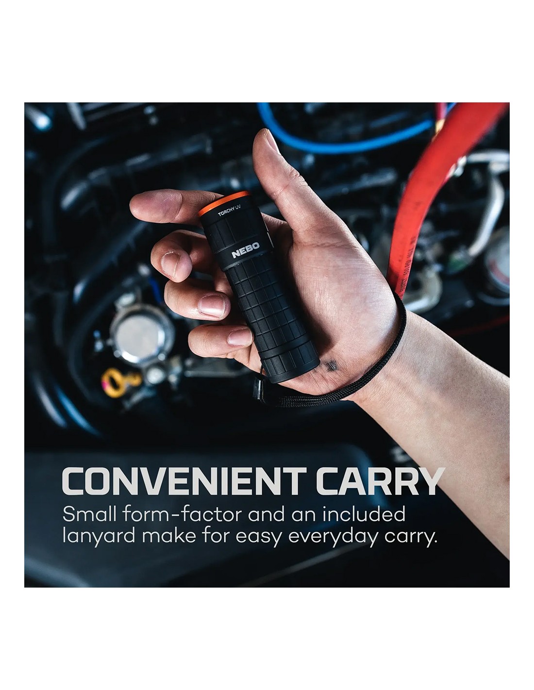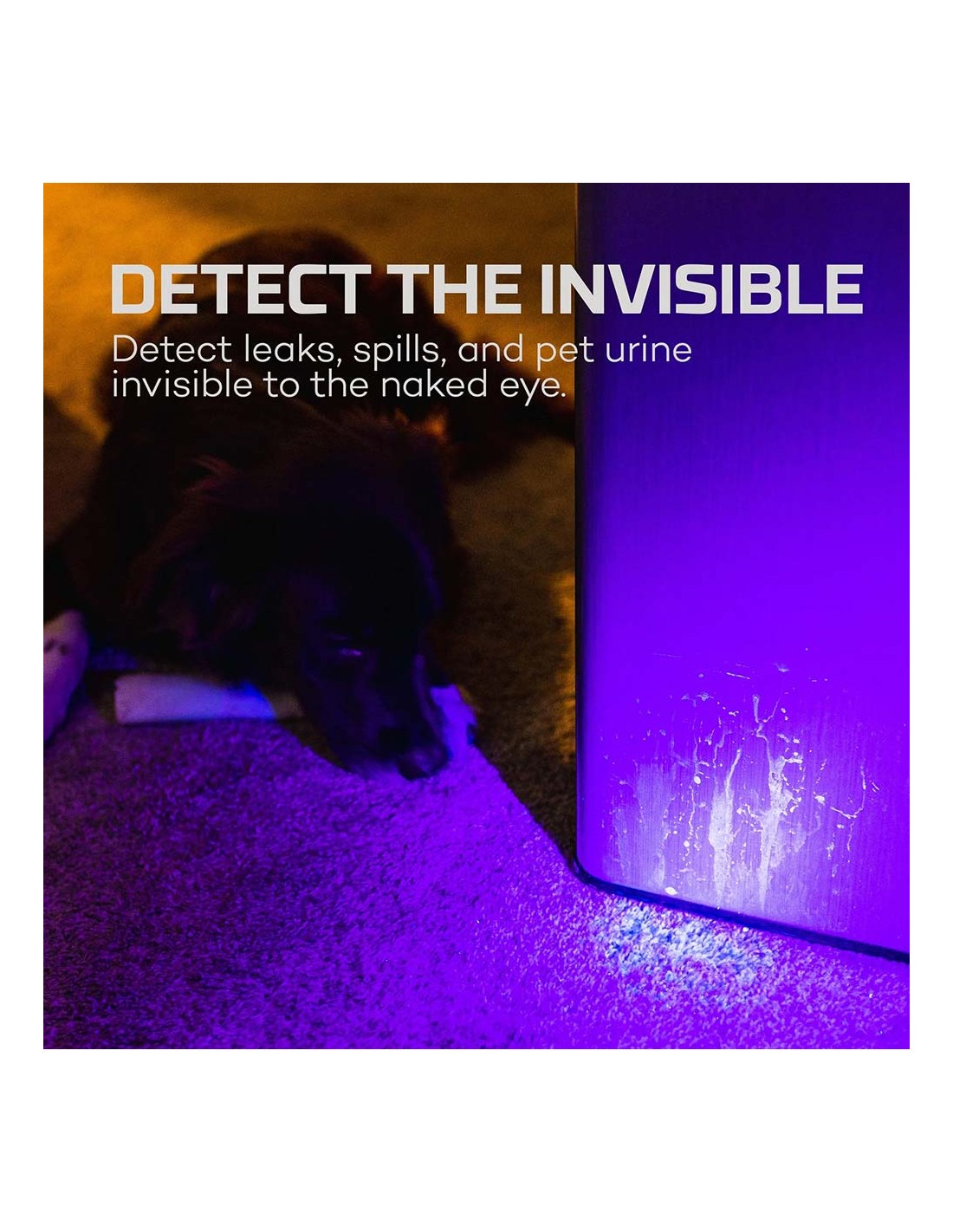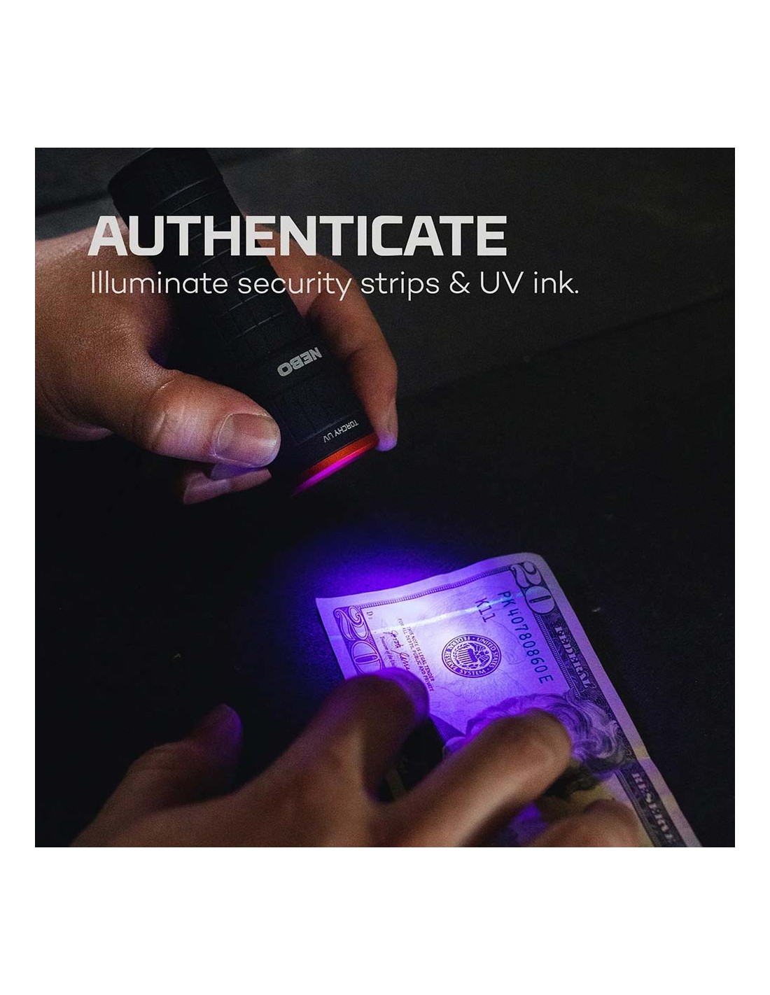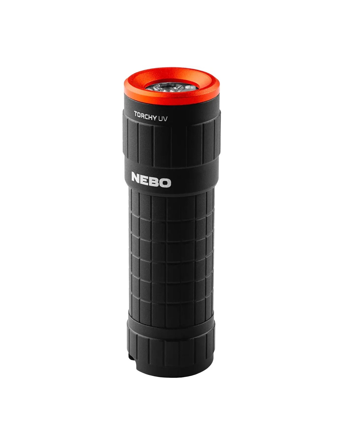 Torchy uv. vea lo invisible con la luz ultravioleta y negra de torchy. diseñada con tecnología uva dual (ultravioleta a) para una mejor detección, inspección y autenticación en aplicaciones residenciales y comerciales. las longitudes de onda de amplio espectro proporcionan una iluminación y fluorescencia combinadas que resultan ideales para tareas de corto alcance como la detección de orina de mascotas, la inspección de fugas en automóviles con tintes uv, la detección de plagas como escorpiones, las inspecciones de limpieza y la autenticación de moneda. compacta y de bolsillo, esta linterna está fabricada con una carcasa de aluminio duradero resistente a los golpes y al agua. funciona con tres pilas aaa (incluidas). tecnología uv-a dual (2x395nm + 1x365nm led) - pilas alcalinas (3xaaa) - 2 modos de luz (alta - baja) - funcionamiento mediante pulsador - construcción de aluminio - resistente al agua clasificación ipx4. nebo