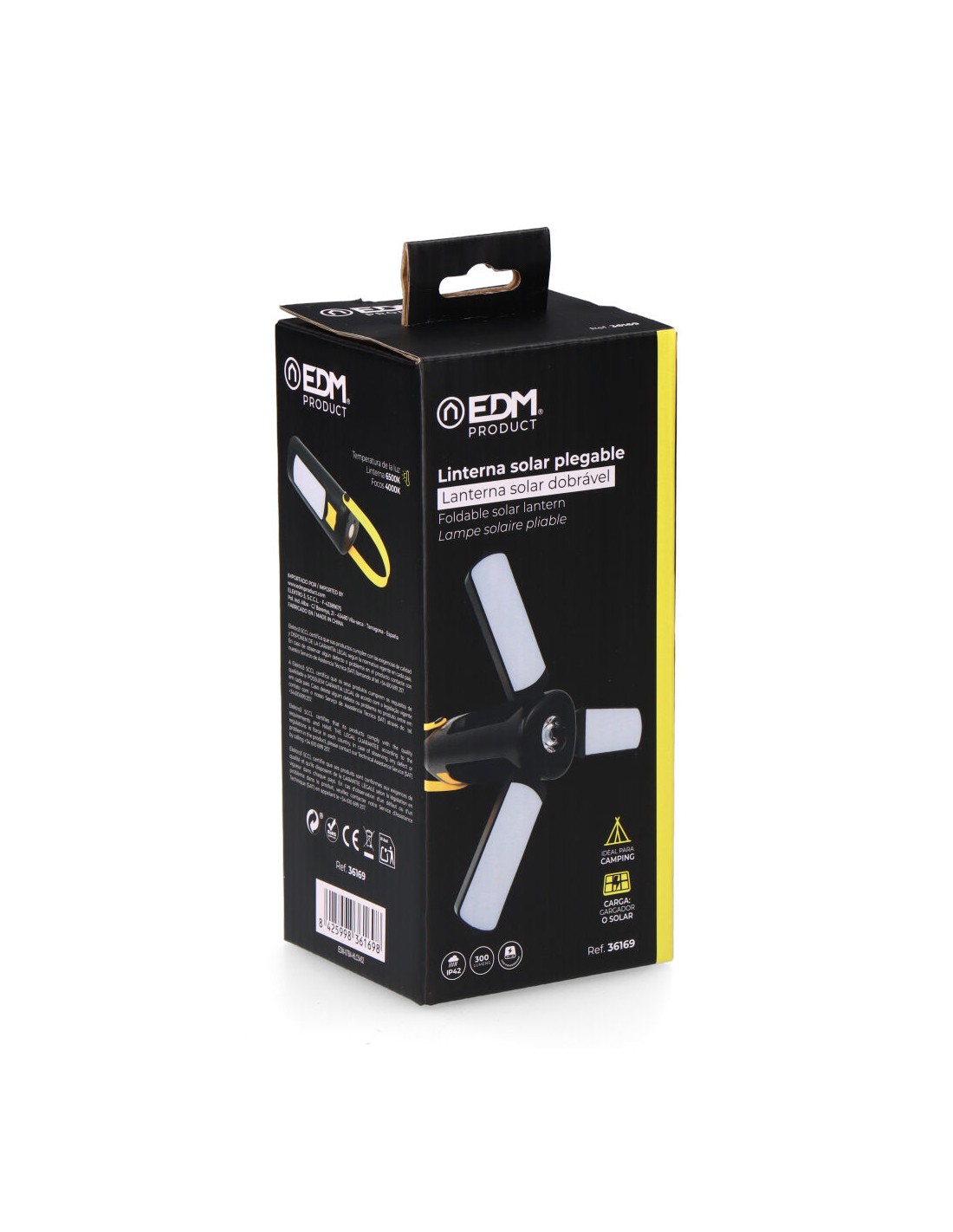 Linterna solar plegable, ip42, 300 im / 150 im. temperatura de la luz: linterna 6500k / focos 4000k. 3 paneles solares, panel solar 5v 240mah. incluye imán de anclaje, asa de sujeción de goma. carga solar / cargador y cable usb - c. batería 2000mah. idonea para camping. dimensiones 6,5 x 17,5 m