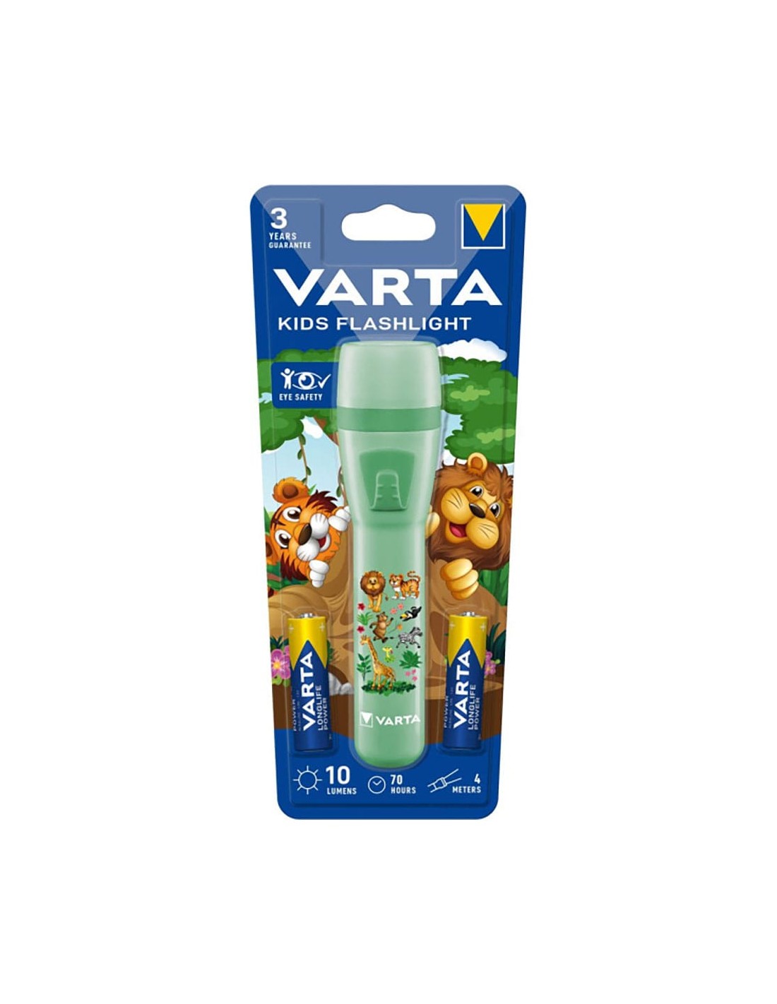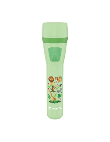 Linterna infantil, diseño temático de la selva con animales. 10 im, rango de foco 4 m. material plástico abs. niveles de iluminación 1. bateria 2 x aa (incluidas). con interruptor deslizante. cumple con la directiva de seguridad de juguetes de la ue