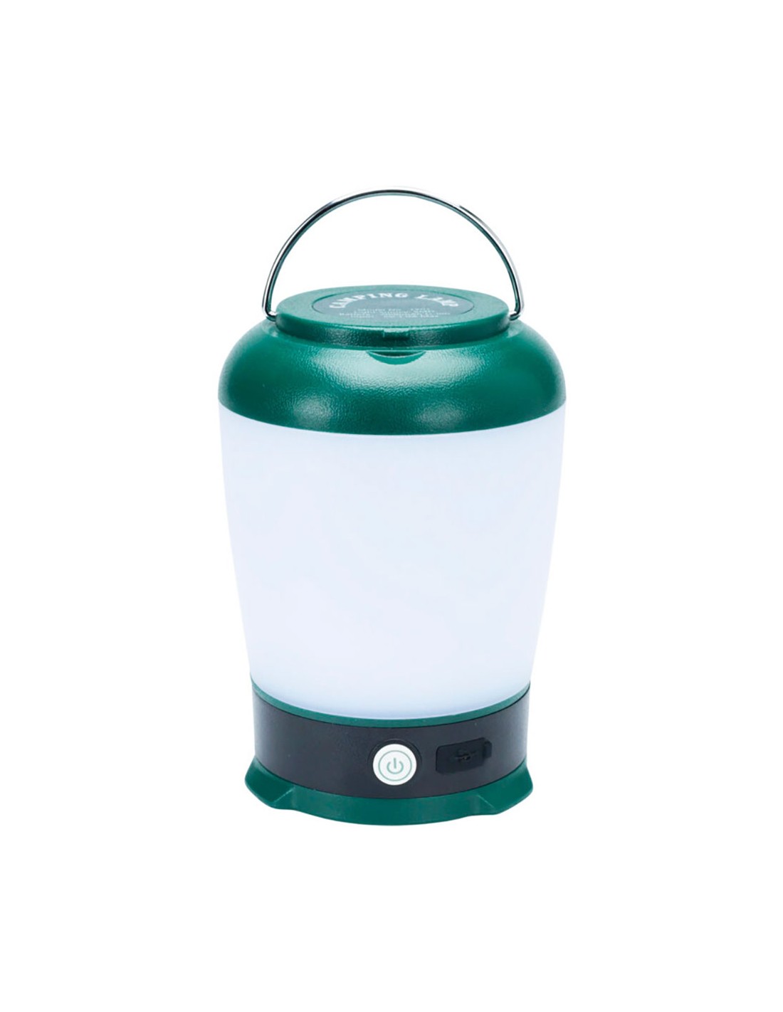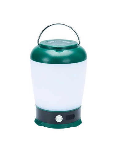 Farol de camping recargable con asa, led smd, 3 modos de luz, abs, batería 18650 li-ion 3,7 v 1200 mah incluida no reemplazable, función powerbank 5 v 1,0 a max, tiempo de carga 3 h aprox, tiempo de uso al brillo máximo 3,5 h aprox incluye mosquetón, color verde 13 x 9 x 9 cm