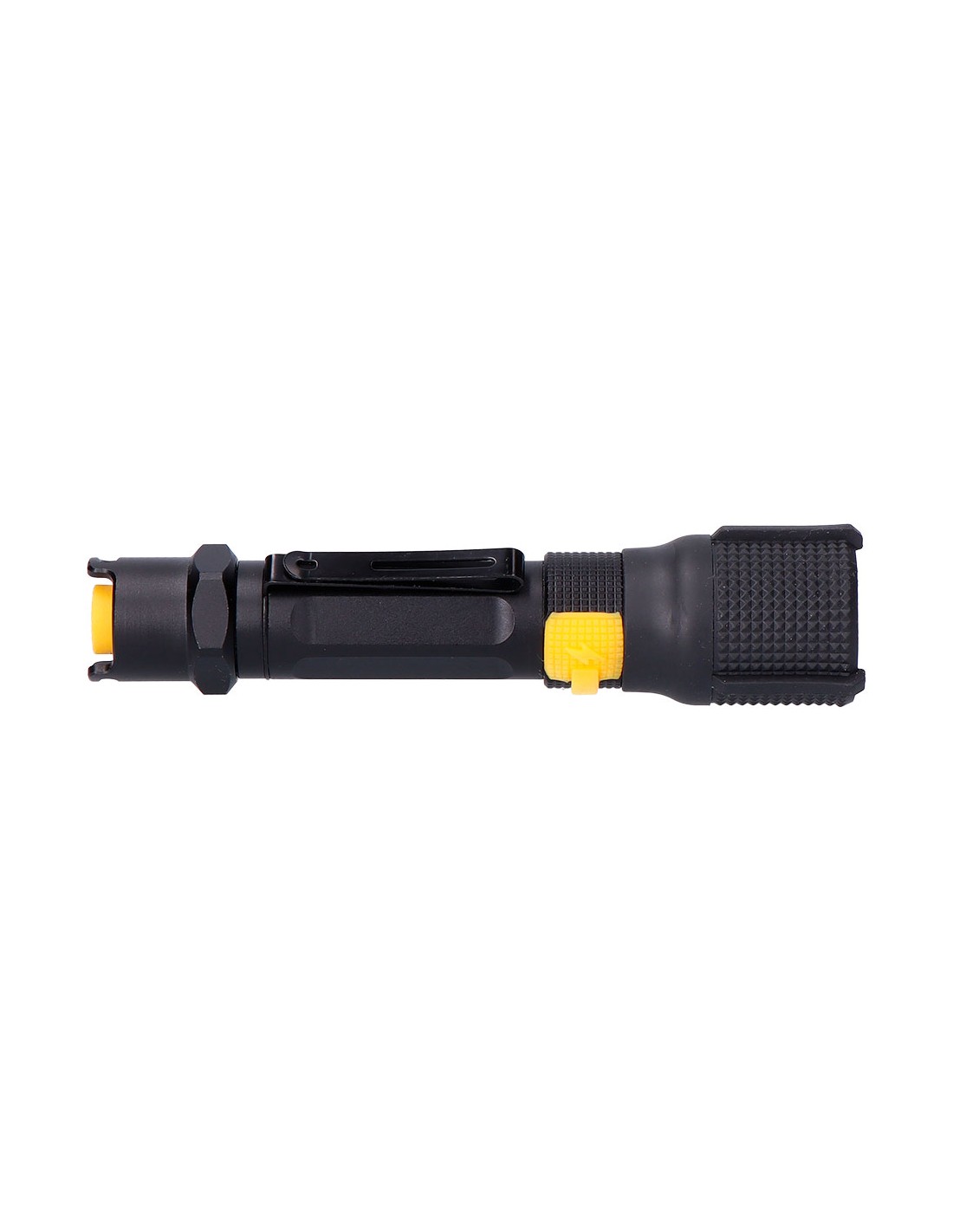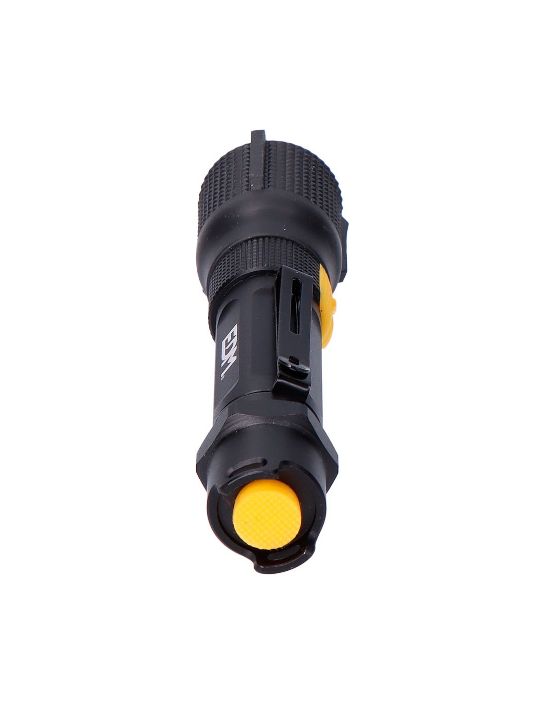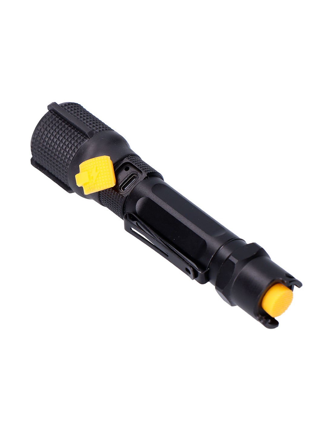 Linterna led táctica mini recargable wolf x1 de 5 w, 7000 k modos brillo: 500 lm / 200 lm / flash con función zoom botón táctico silencioso on / off batería 800 mah de litio incluida cable usb tipo c incluido con clip para colgar hasta 5 h de autonomía carga de 3 h cuerpo de aluminio ip67 sumergible hasta 1 m durante 30 min dimensiones ø32 x 139 mm. se presenta en expositor de 6 uds