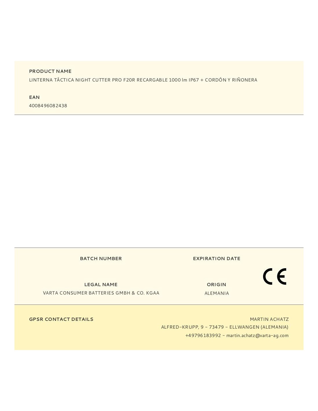 Linterna night cutter pro f20r tactical, 1000 lm, ip67. con sistema de enfoque de precisión y extensión cerámica rompe vidrios. recargable con cable usb-c (incluido). niveles de iluminación 5 (turbo, alto, medio, bajo y estroboscópico), rango de foco 200 m. autonomía 22 horas. material aluminio, pc. dimensiones: ø39 mm del cabezal, longitud 166 mm. incluye cordón y riñonera
