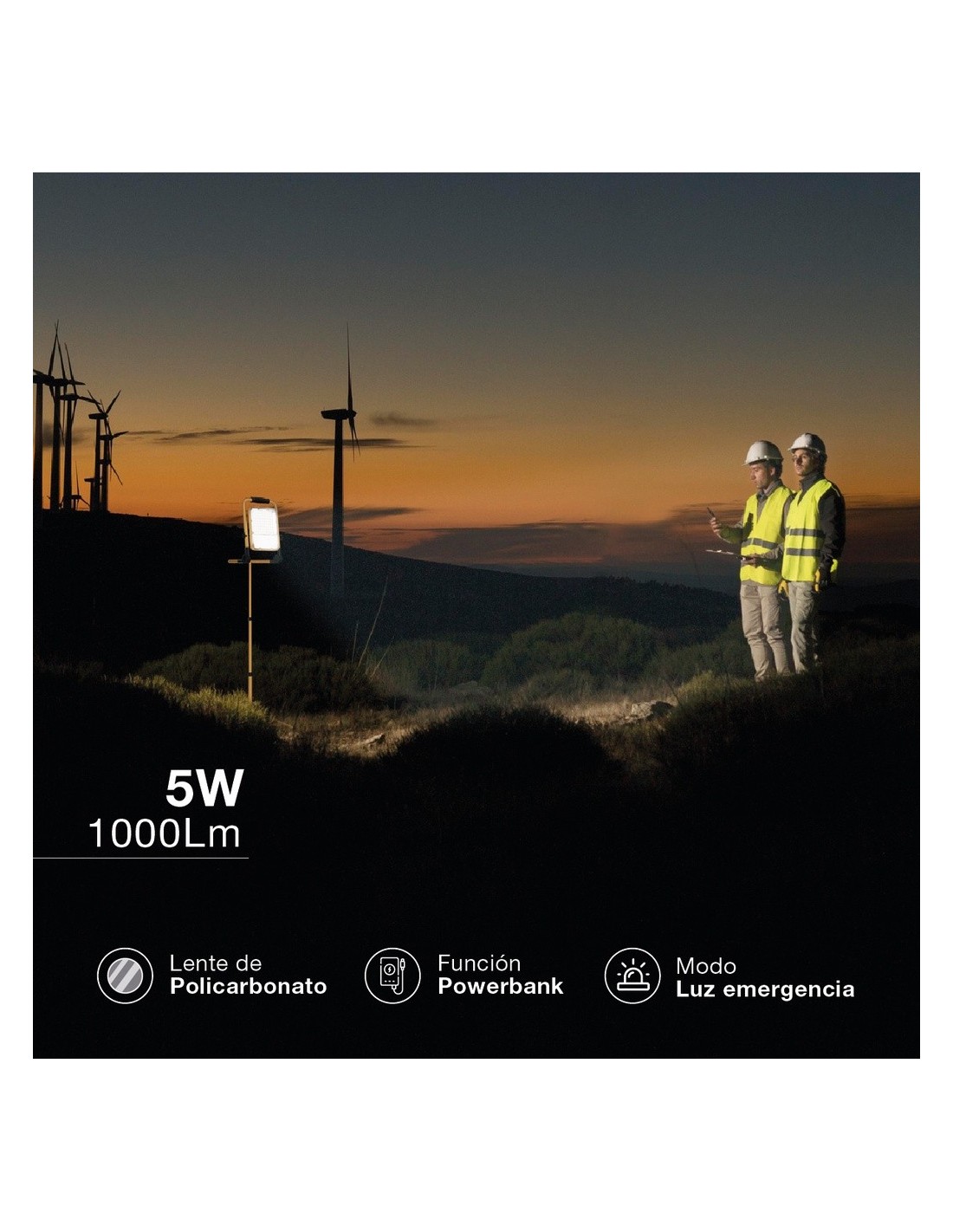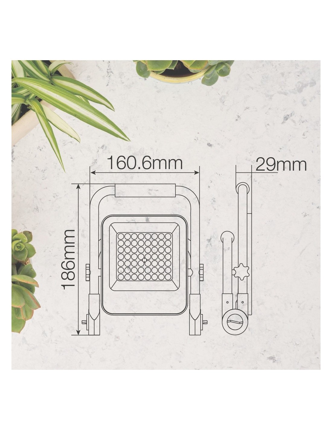 Cuenta con un índice de protección IP65, por lo que es ideal para iluminar patios, jardines y áreas de trabajo al aire libre.