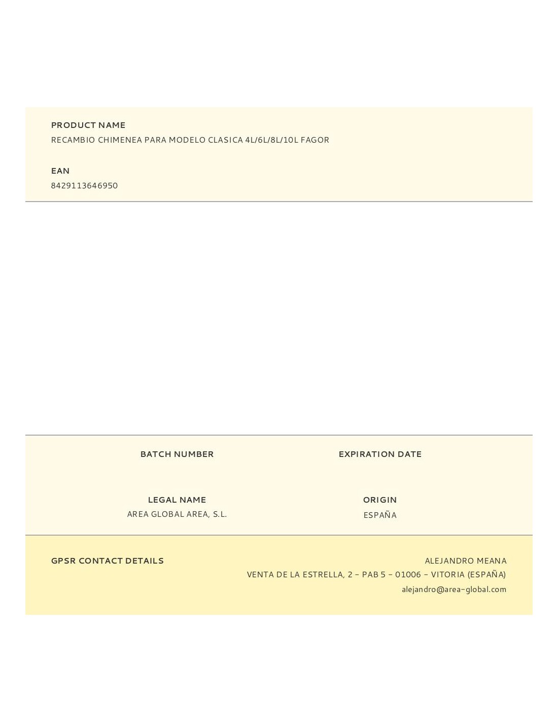 Recambio chimenea para modelo clasica 4l/6l/8l/10l fagor