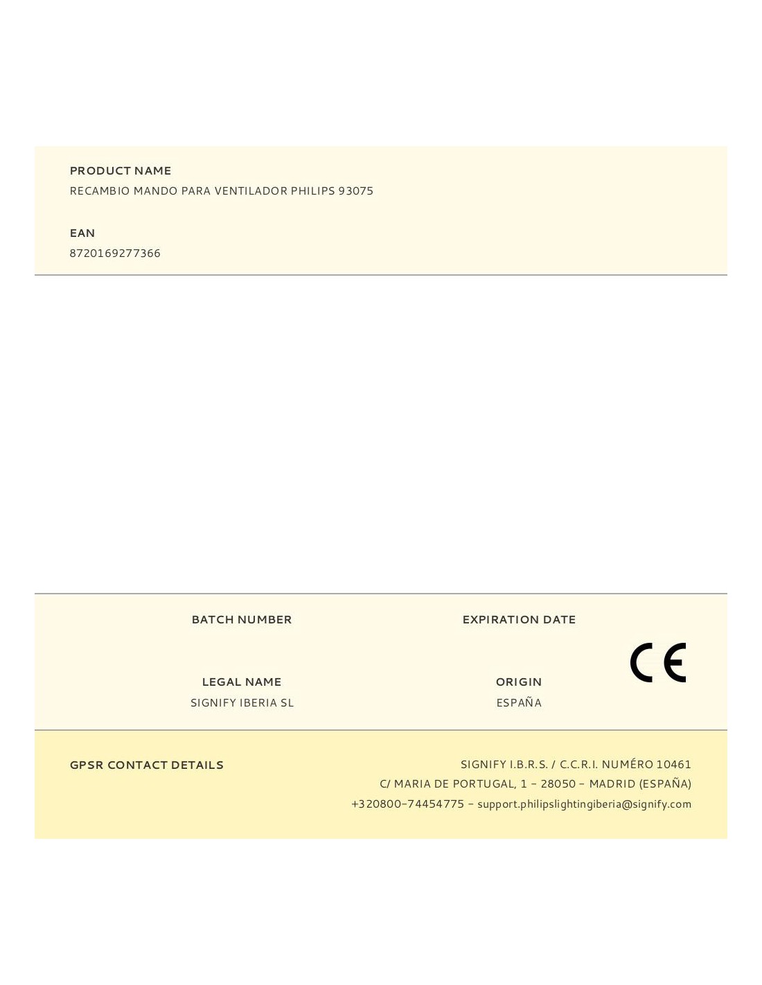 Recambio mando para ventilador philips 93075 modelo amigo