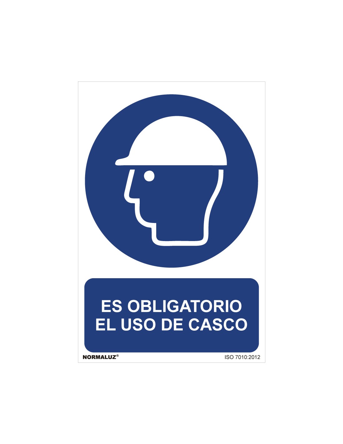 Cartel "es obligatorio el uso de casco" (pvc 0,7mm) 30x40cm normaluz