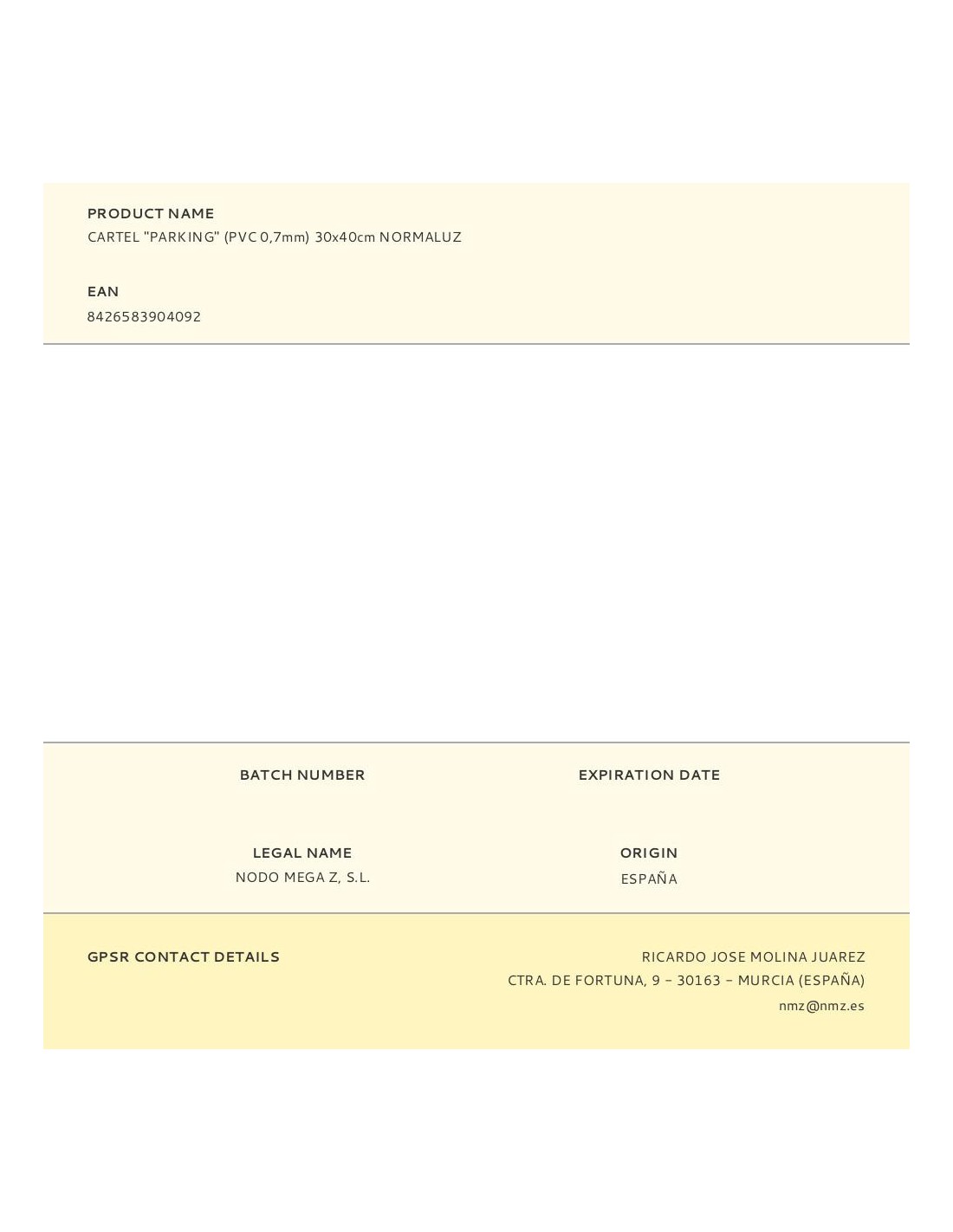 Cartel "parking" (pvc 0,7mm) 30x40cm normaluz