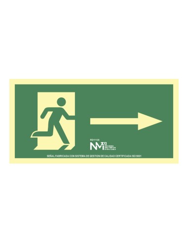 Cartel de evacuación flecha derecha (pvc 1mm) clase a 32x16cm normaluz