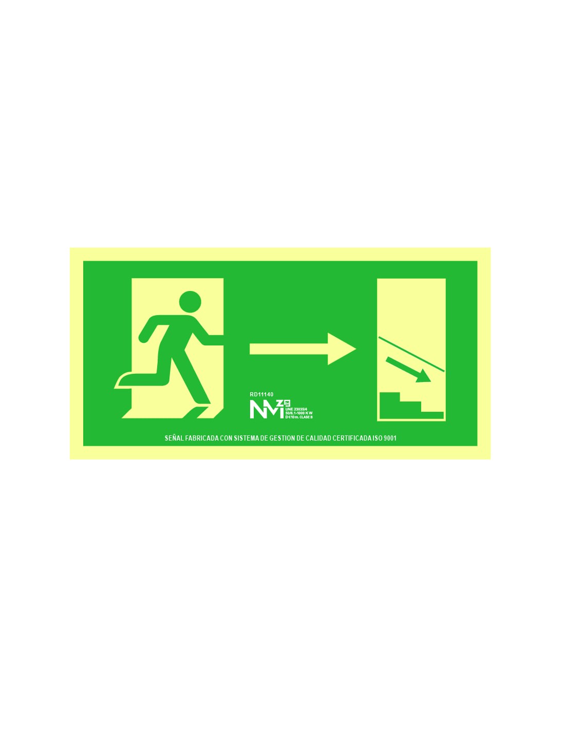 Cartel evacuación escalera abajo derecha pvc 0,7mm clase b 32x16cm b11140 normaluz