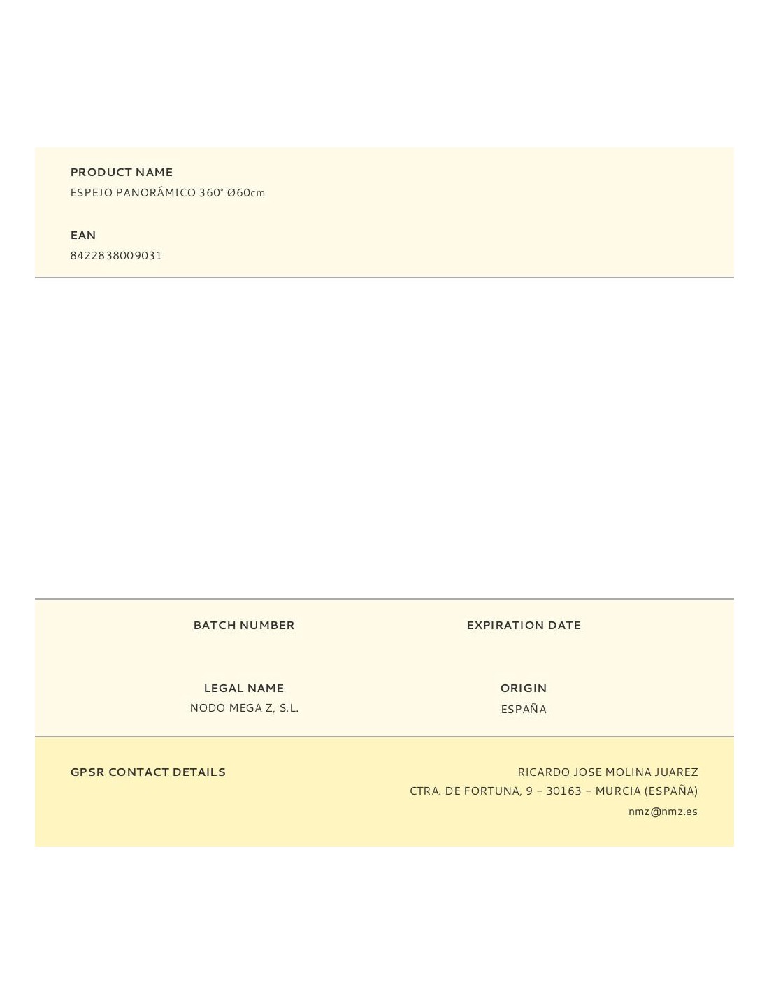 Espejo panorámico 360° ø60cm. visión sin distorsiones. óptimo para salas de ventas,almacenes logísticos,industria y comercio en general. evita accidentes.peso:840gr.