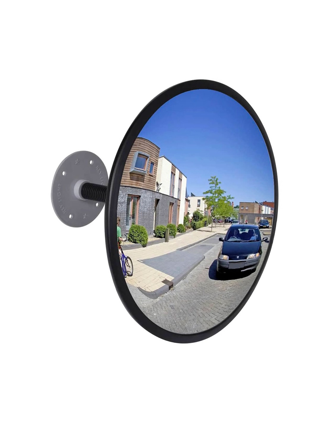 Espejo interior ø30cm. distancia de visión máxima 2m.incluye tornilleria y soporte.material:luna pmma de 2mm con refuerzo perimetral de caucho.