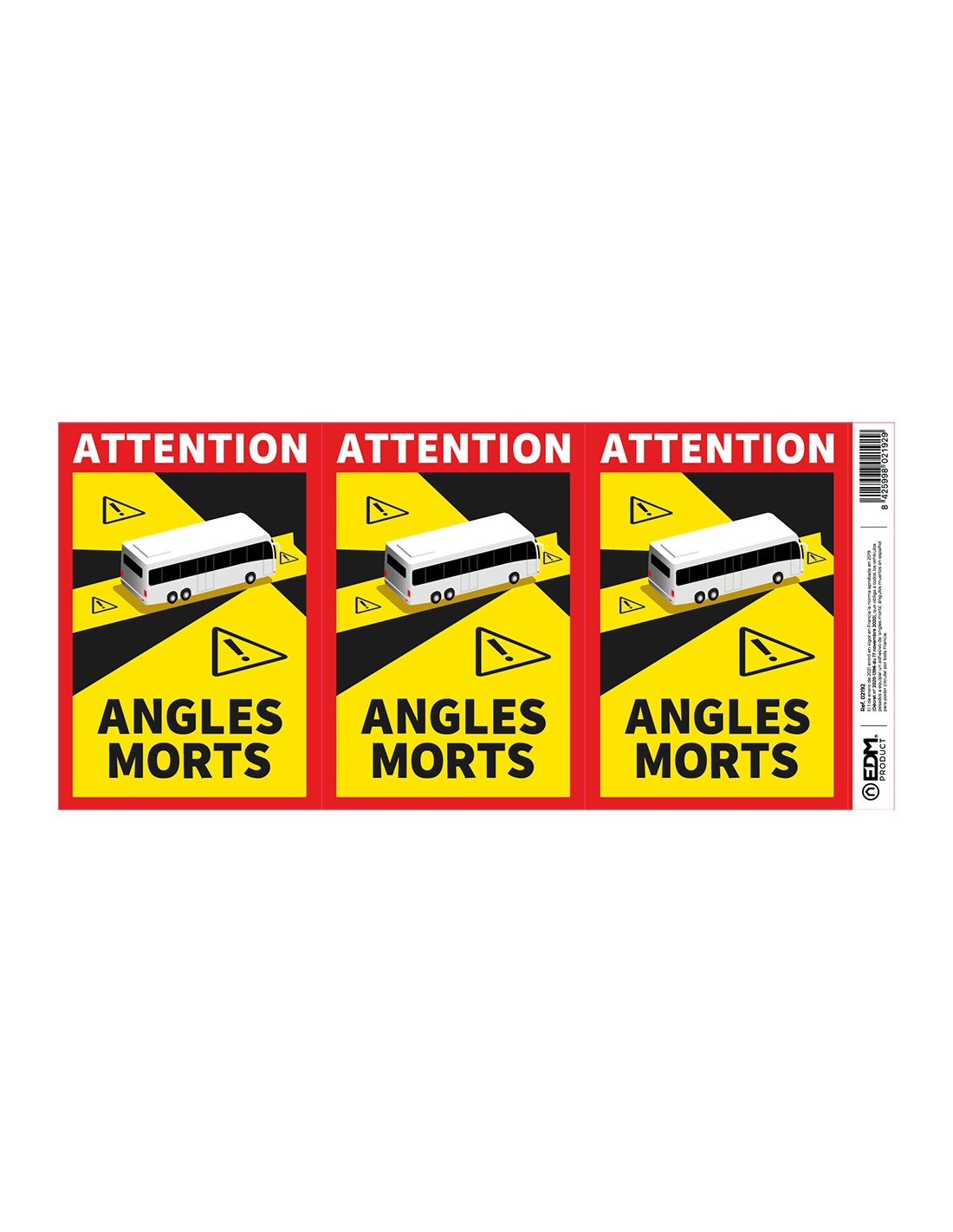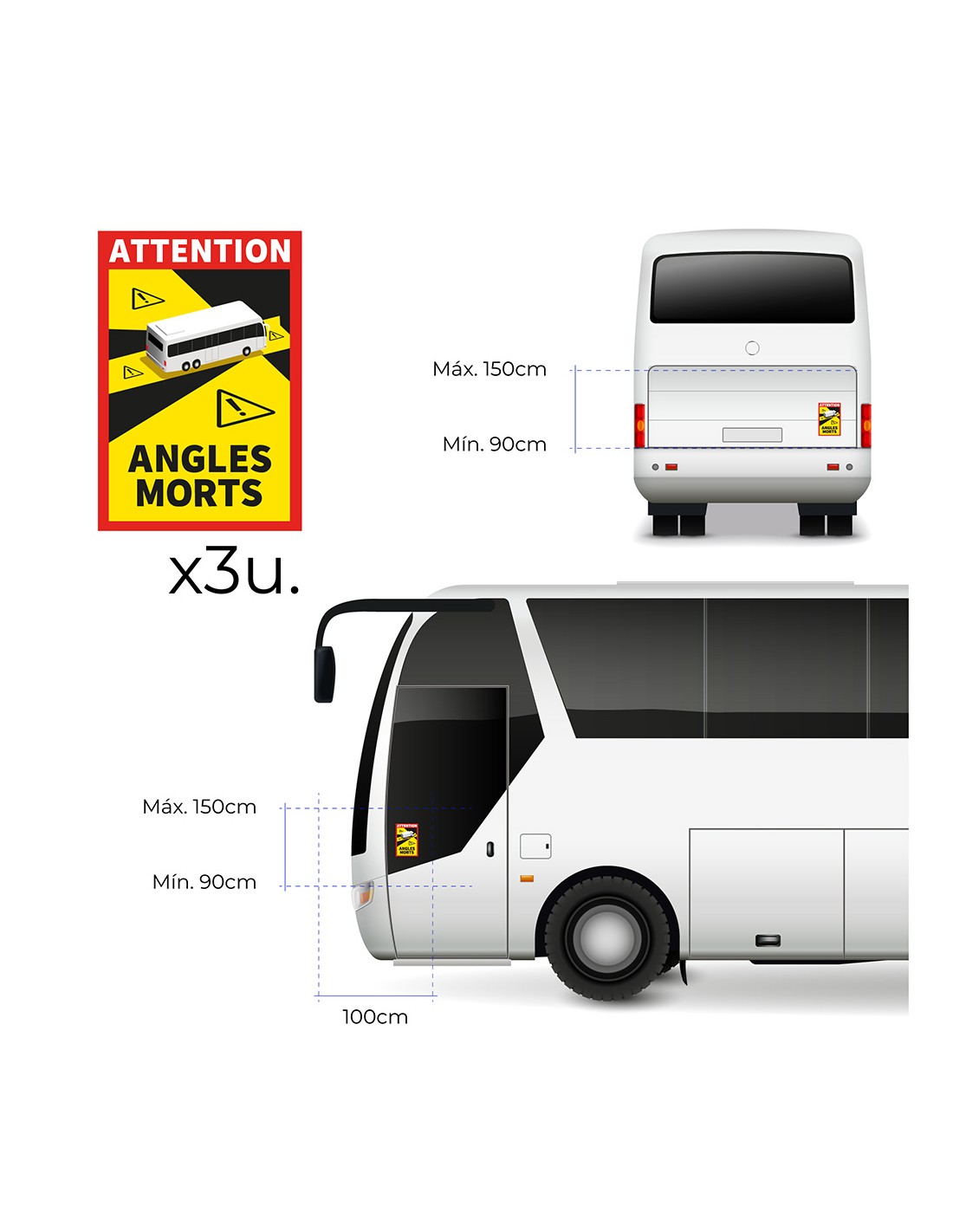 Pack 3 adhesivos "angles morts" autocar 17x25cm. adhesivo de advertencia de ángulos muertos para autocares (obligatorias en francia). impresos mediante tintas uvi sobre vinilo polimérico de máxima durabilidad y laminado con vinilo polimérico transparente que lo protege del sol y las inclemencias meteorológicas.