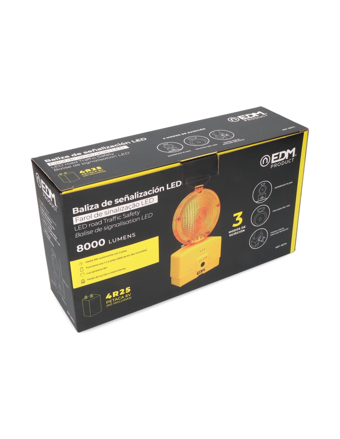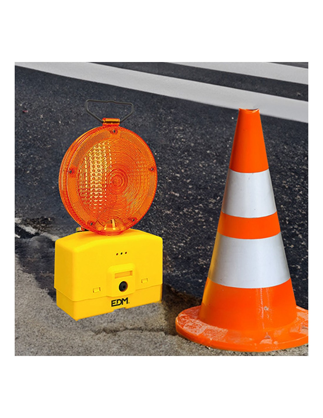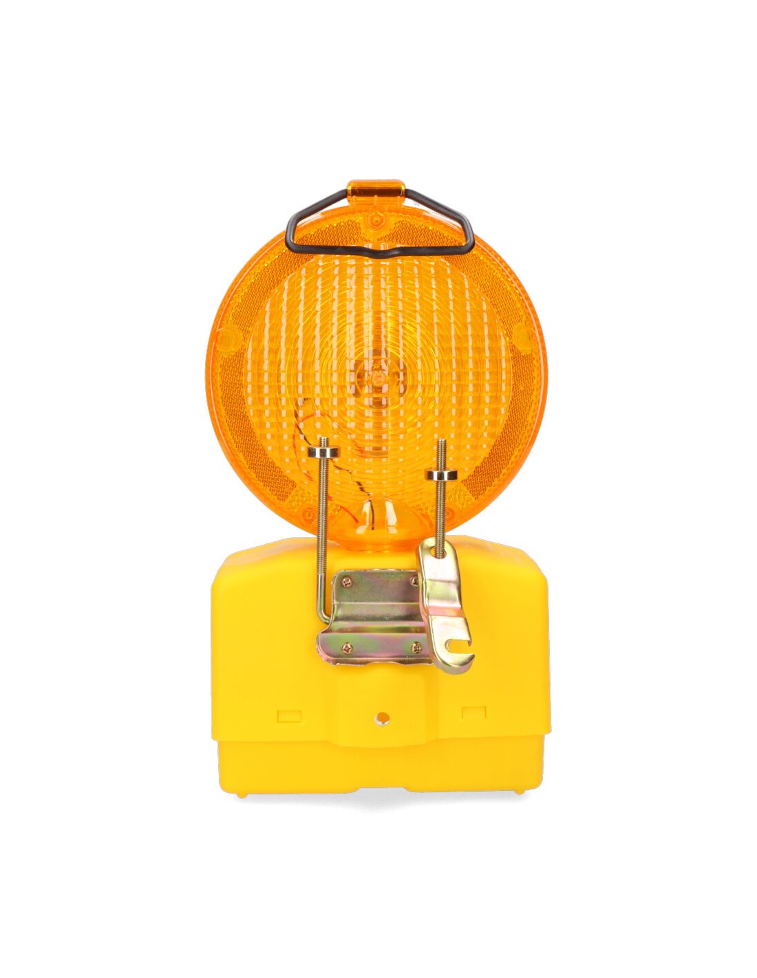 Baliza de señalización led para obras, 2 leds de 0,05w: 6000-8000lm. 2modos: intermitente y fijo, sensor crepuscular, luz giratoria 90°, 3 modos de sujeción: superficie plana, colgada del asa metálica y fijada con el anclaje metálico incluido, cuerpo de pvc muy resistente, funciona con 1 o 2 pilas 4r25 de 6v (no incluidas), resistente al agua ip42, hasta 30h de autonomía, incluye tornillo y llave. dimensiones: 186 x 95 x 370 mm