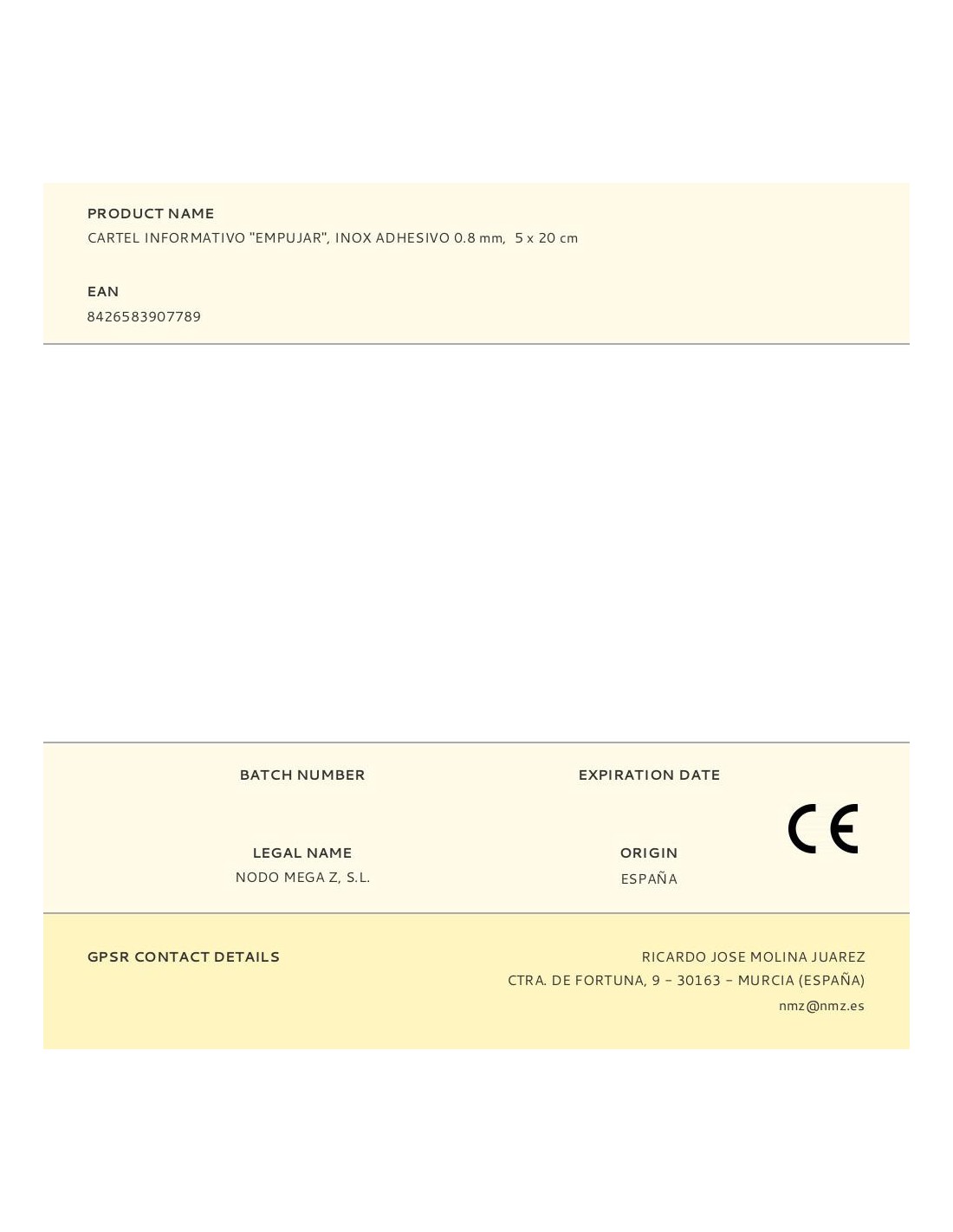 Cartel informativo "empujar", inox adhesivo 0.8 mm, 5 x 20 cm