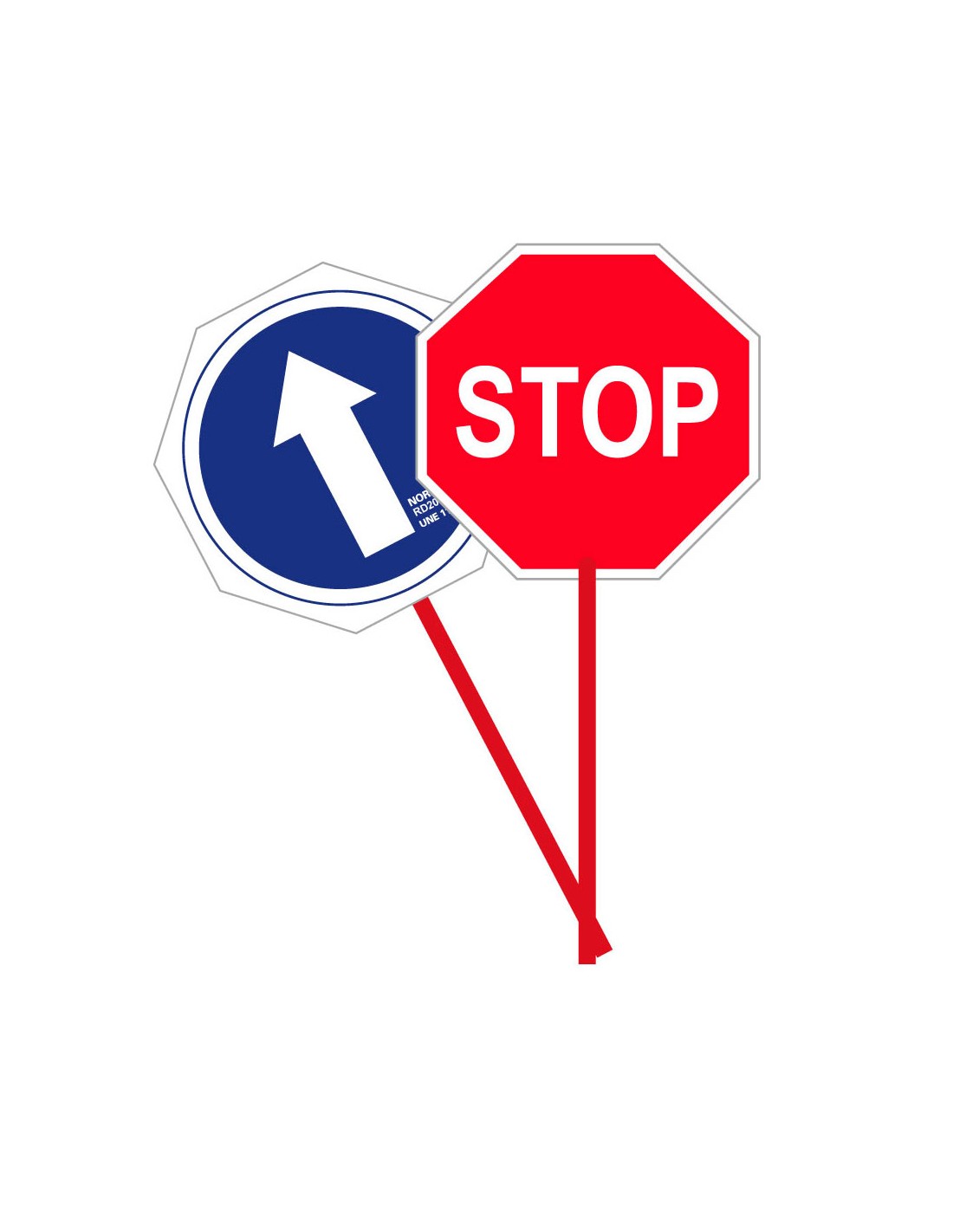 Paleta reversible stop/paso ø30 cm, pvc 2 mm, con mango de aluminio rojo de 25 cm,ideal para regular manualmente el tráfico. en una cara tiene la señal de stop y en la otra la señal de sentido obligatorio