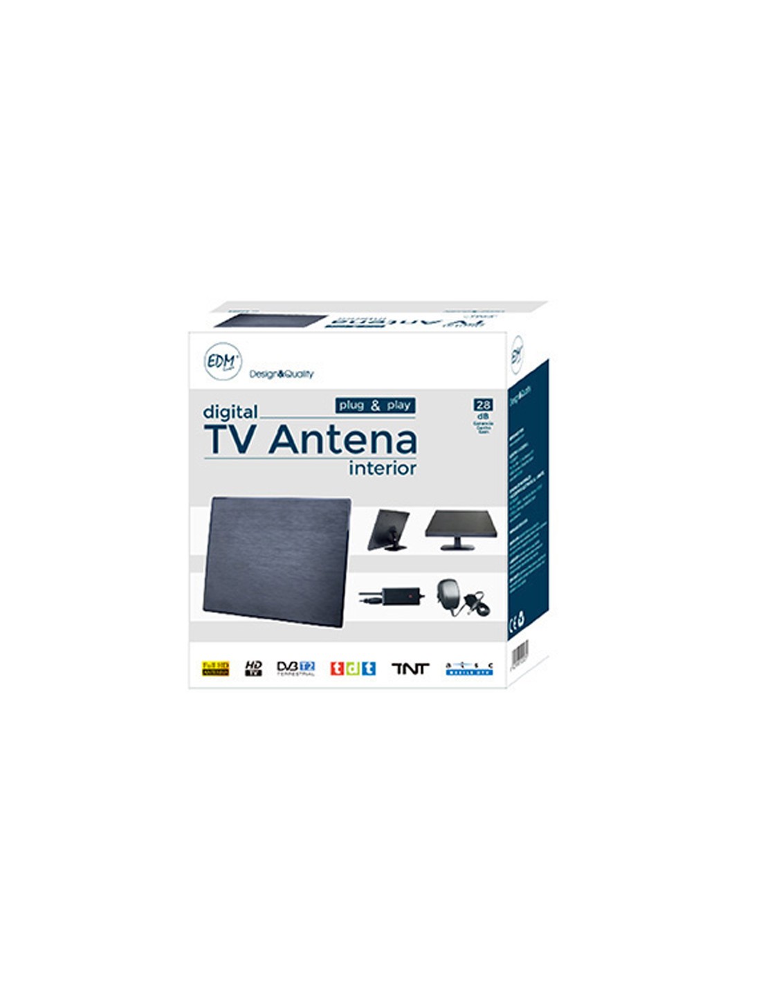 Antena interior tv, banda de trabajo: uhf 470-862 mhz, vhf 174-230 mhz. 28db, impedancia 75 ohm, medida:188x155x13,5mm incluye ac/dc adaptador 12v 2.4w, 200ma.