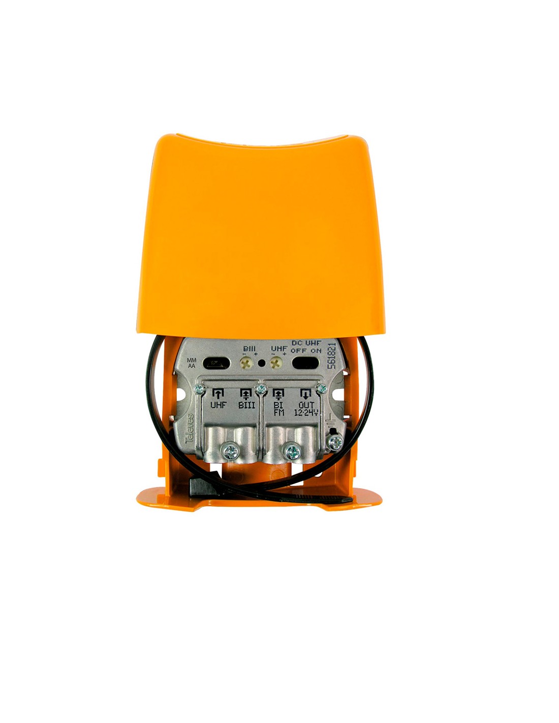 Amplificador de mástil tdt 2 generación nanokom televes. amplificador de instalación en mástil para amplificar y mezclar señales de television terrestre provenientes de varias antenas. consta de 3 entradas: la señal es amplificada en las entradas biii y uhf, mientras que la de la fm solo se mezcla. diseño ergonomico ultrarreducido. puede ser alimentado desde 12v a 24v. chasis de alto blindaje. montaje sencillo, brida para sujeción al mástil incluida. cobre de resistente plastico abs naranja para su instalación en exteriores.