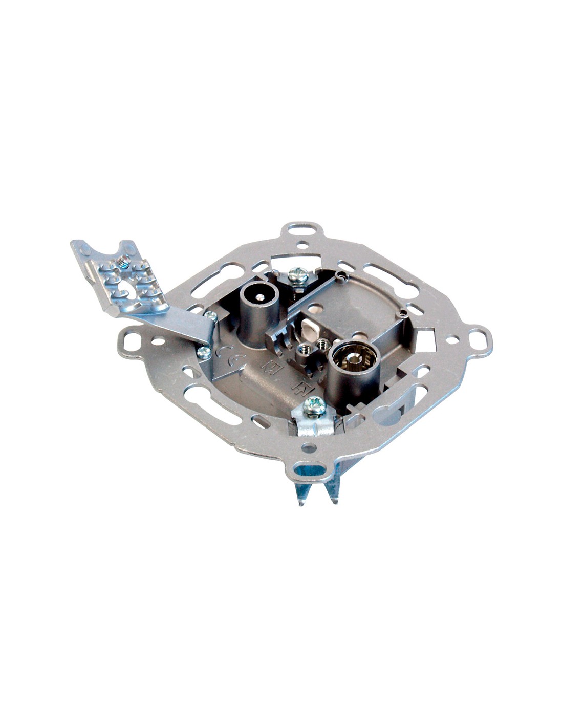 Toma terminal separadora con garras y dos conectores cei televes. el de la izquierda es un cei macho para fm (radio) y tv terrestre y el de la derecha es un cei hembra para tv satelite (fi). con garras. filtro separador de gran rechazo: la señal sat se filtra en el conector cei macho de fm/tv, y la fm/tv terrestre se filtra en el conector cei hembra de satelite. fabricación automatizada en linia robotizada. apantallamiento elevado. gran aislamiento entre salidas. fabricada en zamak, de gran resistencia. paso de dc desde el conector sat hacia la entrada. compatibles con cables coaxiales de diámetro de cubierta 5mm a 7mm. televes.