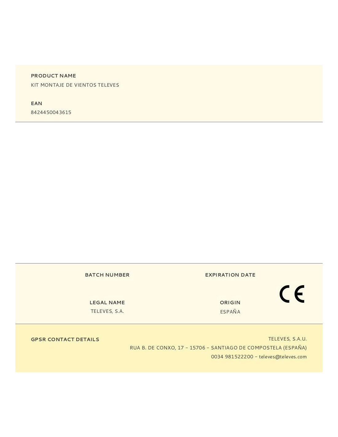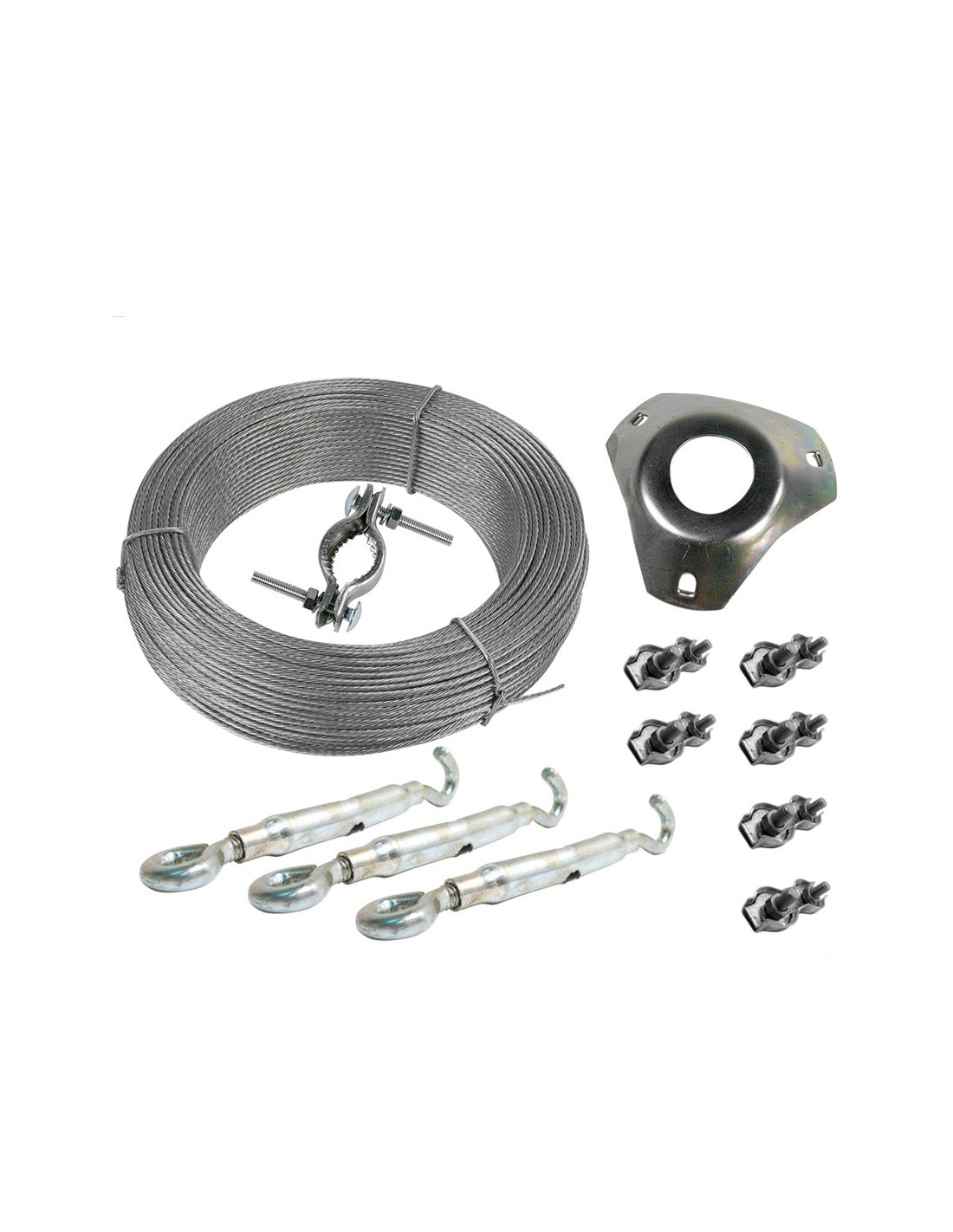 Kit montaje de vientos televes. kit de montaje de vientos en un mástil, que incluye:placa con brida para vientos (ref. 2408) 3 tensores y 6 sujetacables. 25m de cable de acero galvanizado ø2mm. tensión de rotura del cable superior a 200 kp (1960 n). televes.