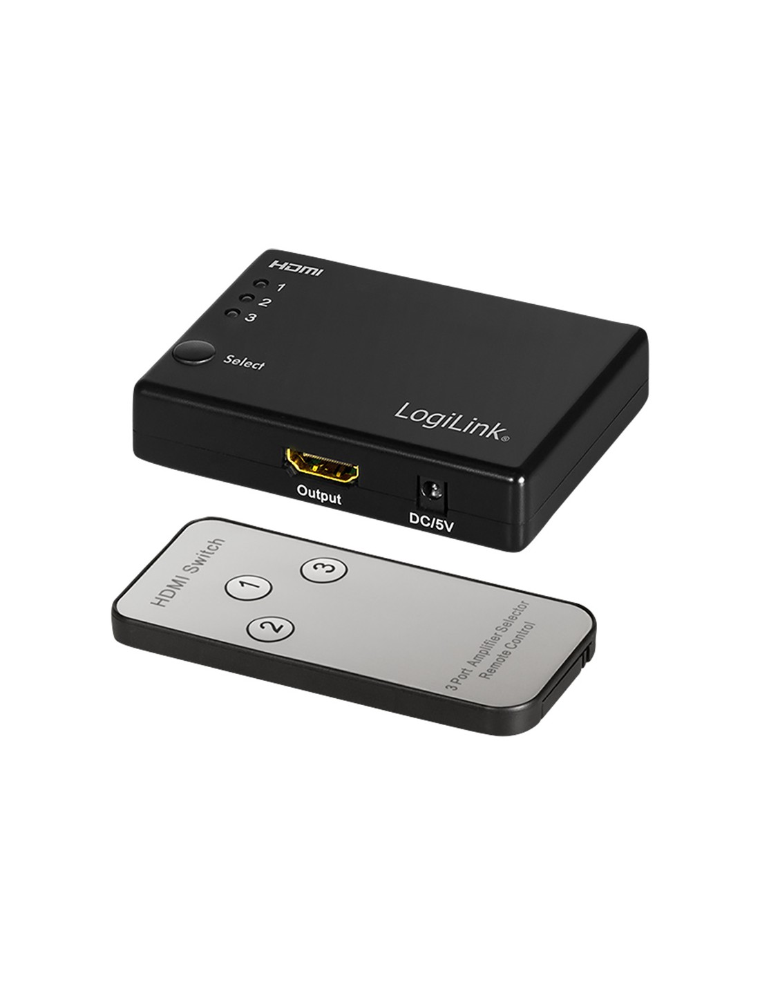 Conmutador hdmi de 3 puertos, 1080p/60hz logilink. permite cambiar cómodamente entre tres fuentes de entrada hdmi mediante control remoto, detección automática inteligente o alternativamente mediante el propio conmutador