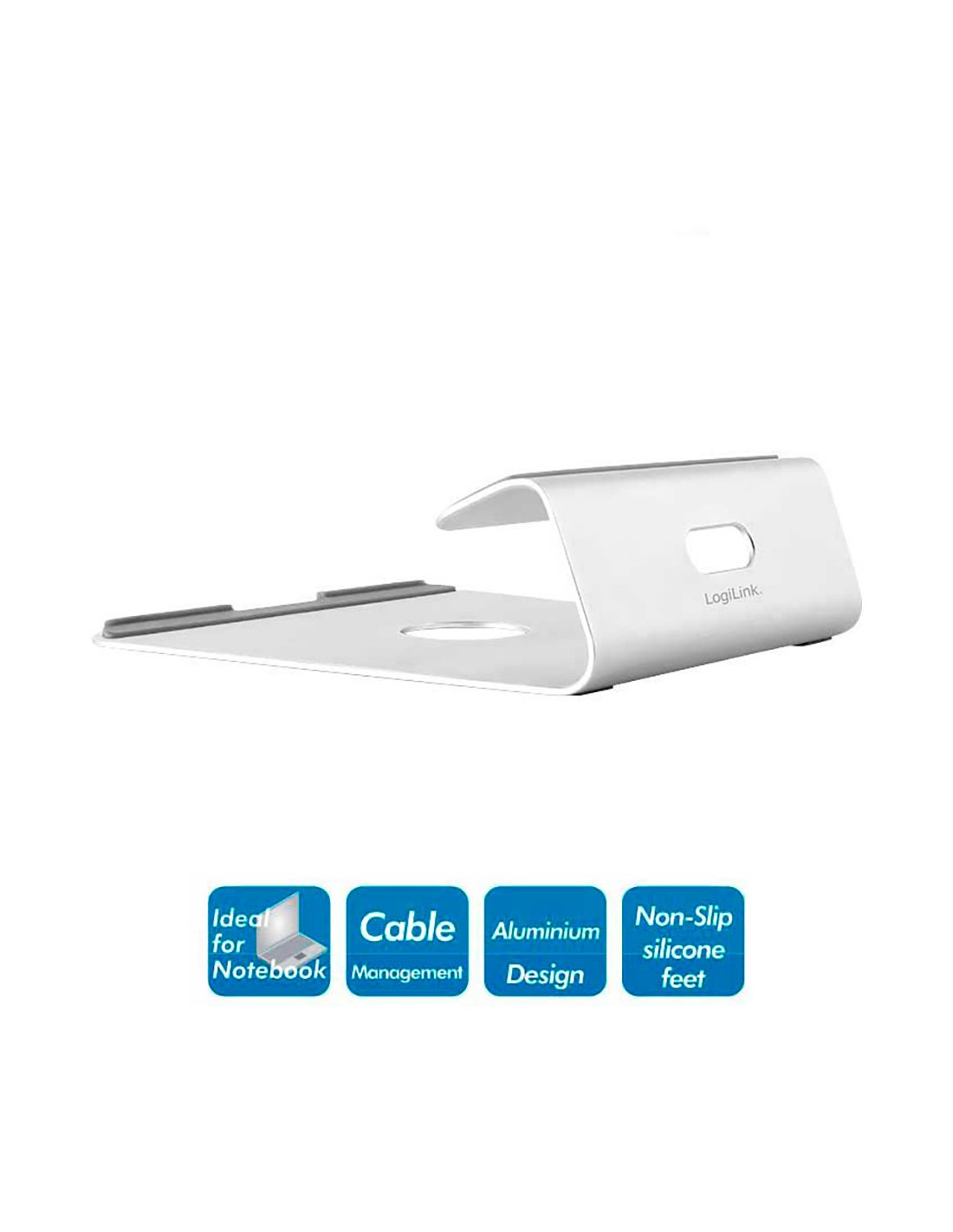 Soporte para portátil, tablet aluminio, 11–15" logilink. eleve la pantalla al nivel de los ojos para un mejor ángulo de visión. el diseño de cuña abierta aumenta la refrigeración y el flujo de aire. las almohadillas de silicona antideslizantes protegen la superficie de trabajo de arañazos o raspaduras. fuerte y estable tanto para portátil como para tablet. diseño de aluminio. carga nominal: hasta 5 kg. peso: 0,519 kg, dimensiones: 21,05x23,9x6,75cm (ancho/fondo/alto)