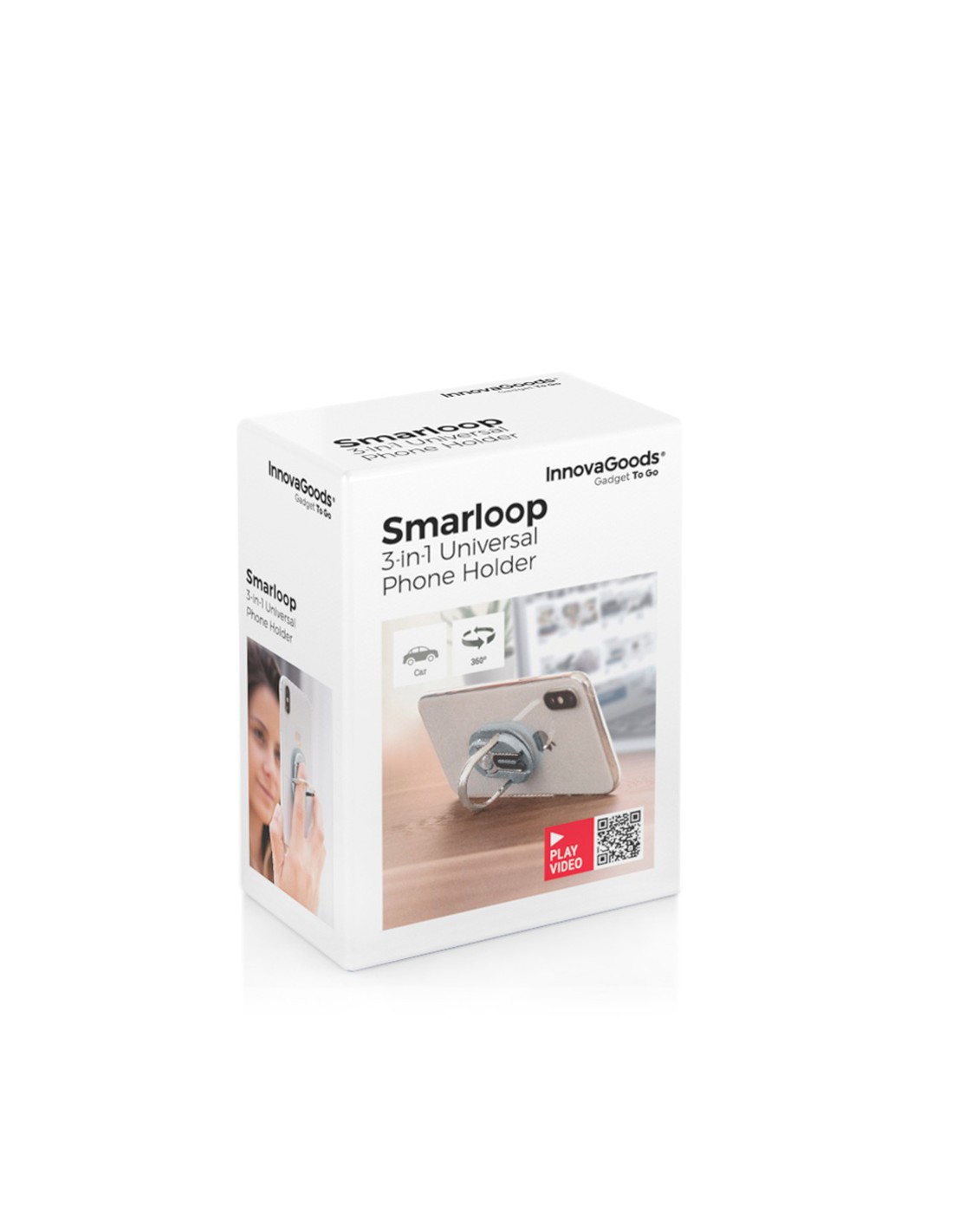 Soporte de móvil universal 3 en 1 smarloop v0103262 innovagoods un soporte de móvil universal con un original diseño multifunción 3 en 1 muy versátil y adaptable a las necesidades de cada momento y lugar. gracias a su resistente y duradero adhesivo 3m de calidad, se adhiere firmemente a la parte trasera teléfono, evitando caídas o movimientos. además, puede girar horizontal (rotación 360) y verticalmente (inclinación 180) para colocarlo en la posición óptima deseada. se puede usar como soporte de sujeción para el móvil sobre la mesa o el escritorio. también se instala fácilmente en la rejilla de ventilación del coche mediante su clip dentado, que permite una sujeción más firme y segura ante las vibraciones de la circulación por carretera u otros problemas. otra opción, es usar su anilla de agarre en el dedo para realizar selfies, etc. este novedoso soporte de móvil multiposición es compacto, ligero y manejable, ocupa poco espacio y es muy fácil de usar y llevar a cualquier parte. incluye instrucciones de uso y es apto para todos los móviles y fundas.
